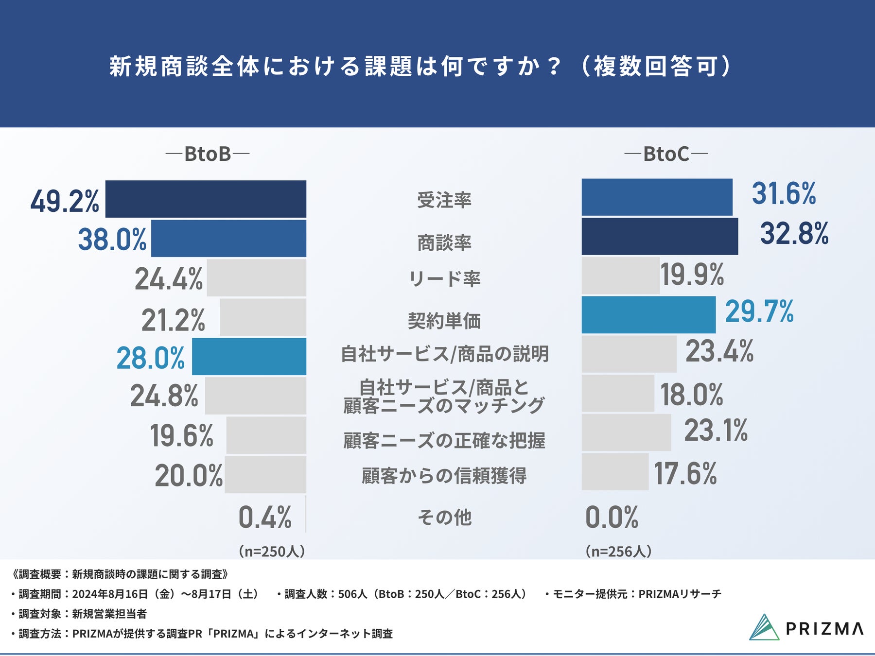 今回、株式会社PRIZMA(https://www.prizma-link.com/press)は新規営業担当者(BtoB/BtoC)506名を対象に、「新規商談時の課題に関する調査」を実施しました。