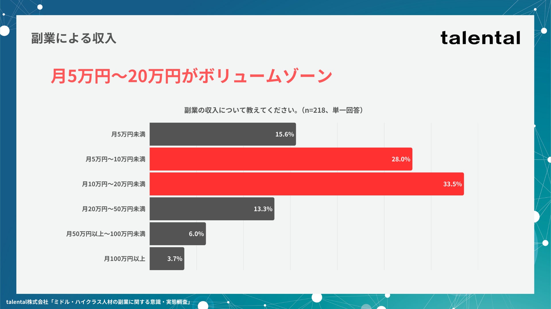 調査対象(本調査):スクリーニング調査にて「年収600万円以上」かつ「現在(直近1年以内)、副業をしている」と回答した方218名