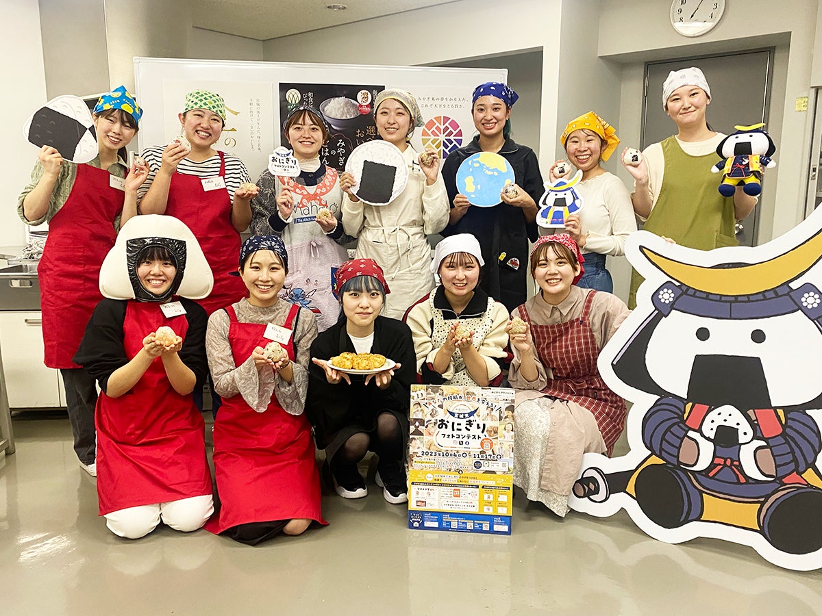 仙台白百合女子大学(仙台市泉区)と宮城学院女子大学(仙台市青葉区)の有志が集い、おにぎりについて語り合います。好きな具材やおにぎりにまつわる思い出の他、女子大学生ならではの視点で地産地消や持続可能な地域社会への貢献について考えます。また、宮城県在住の料理研究家・早坂明子さんが考案したおにぎりレシピを一緒につくりながら交流。宮城を代表する4品種「ササニシキ」「ひとめぼれ」「だて正夢」「金のいぶき」を使用したレシピで、それぞれの特徴を引き立てた内容です。