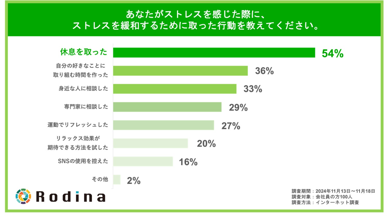 ・ストレスを緩和するため「休息を取った」と回答する方が最多