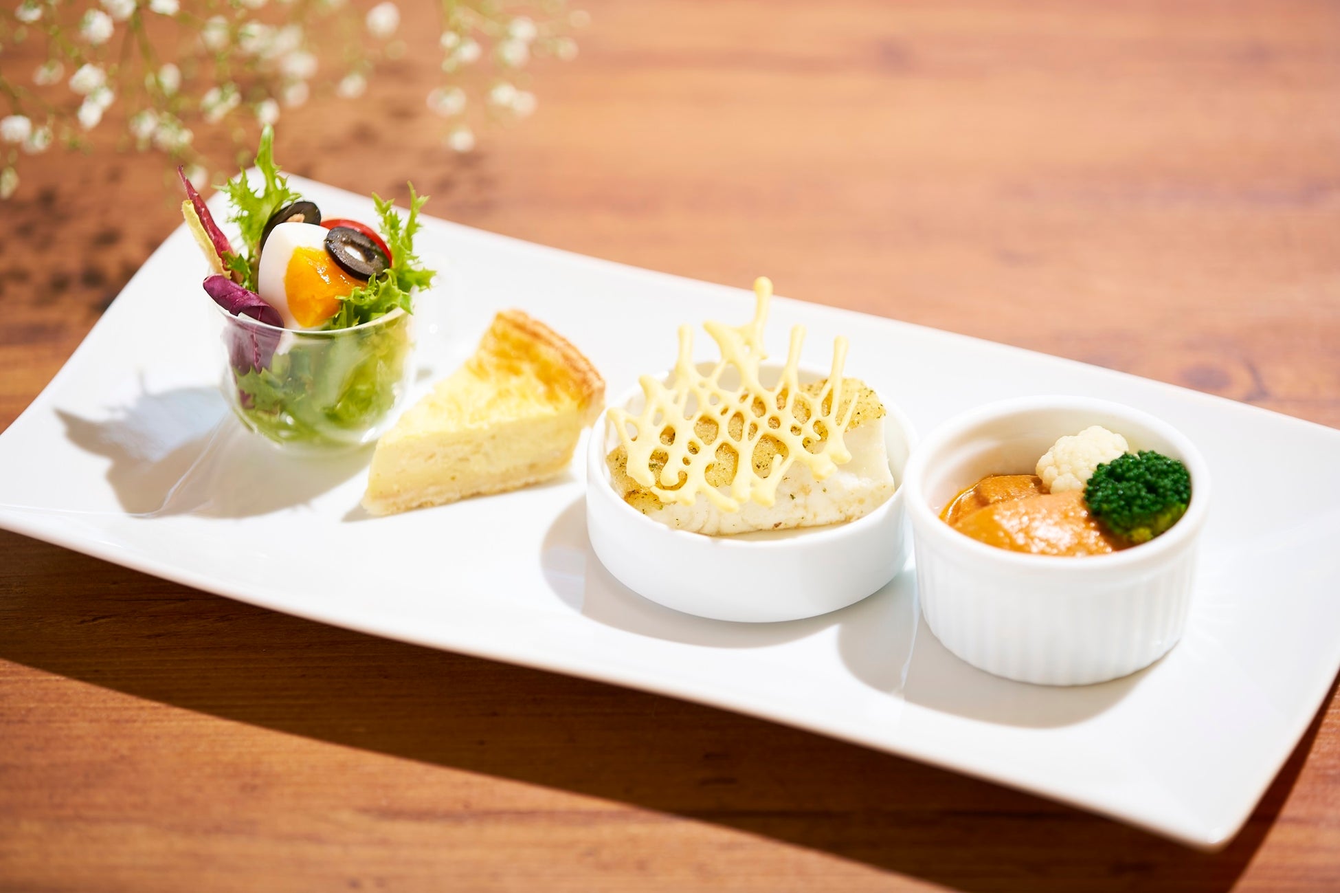 〈セイボリー〉ブーケサラダニソワーズ、キッシュロレーヌ、真鯛のアングレーズ、チキンのトマト煮