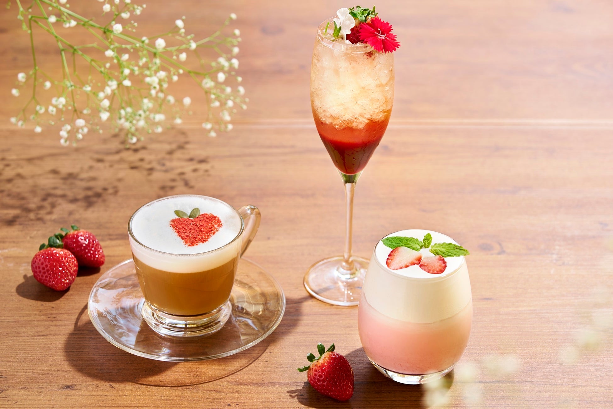 苺をアクセントにしながら身体にやさしい素材を取り入れた3種の限定ドリンクを含む、紅茶やコーヒーのフリーフローで、華やかで心地よいティータイムをお楽しみください。