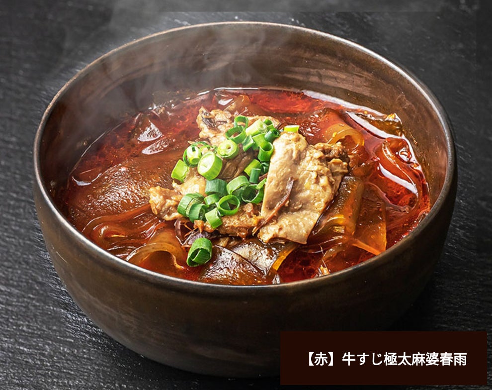 痺れる辛さと濃厚なの花椒香りに極太春雨がたまらない!極太春雨のもちもち食感が、濃厚なスープと絶妙に絡み合います。花椒の痺れる辛さと、濃厚なコクが絶妙なバランス。一度食べたら忘れられない、冬にぴったりな一品です。
