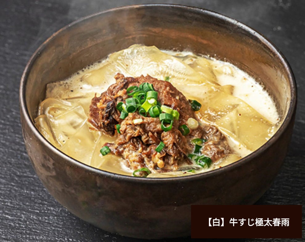 極太春雨を野菜や肉などの具材とともに鍋で楽しめます。コラーゲンたっぷりのスープは、体が温まるので寒い冬にぴったりです。口に入れた瞬間、もちもちとした食感が広がり、濃厚なスープが口の中いっぱいに広がります。身体の芯から温まる、至福のひとときをどうぞ。