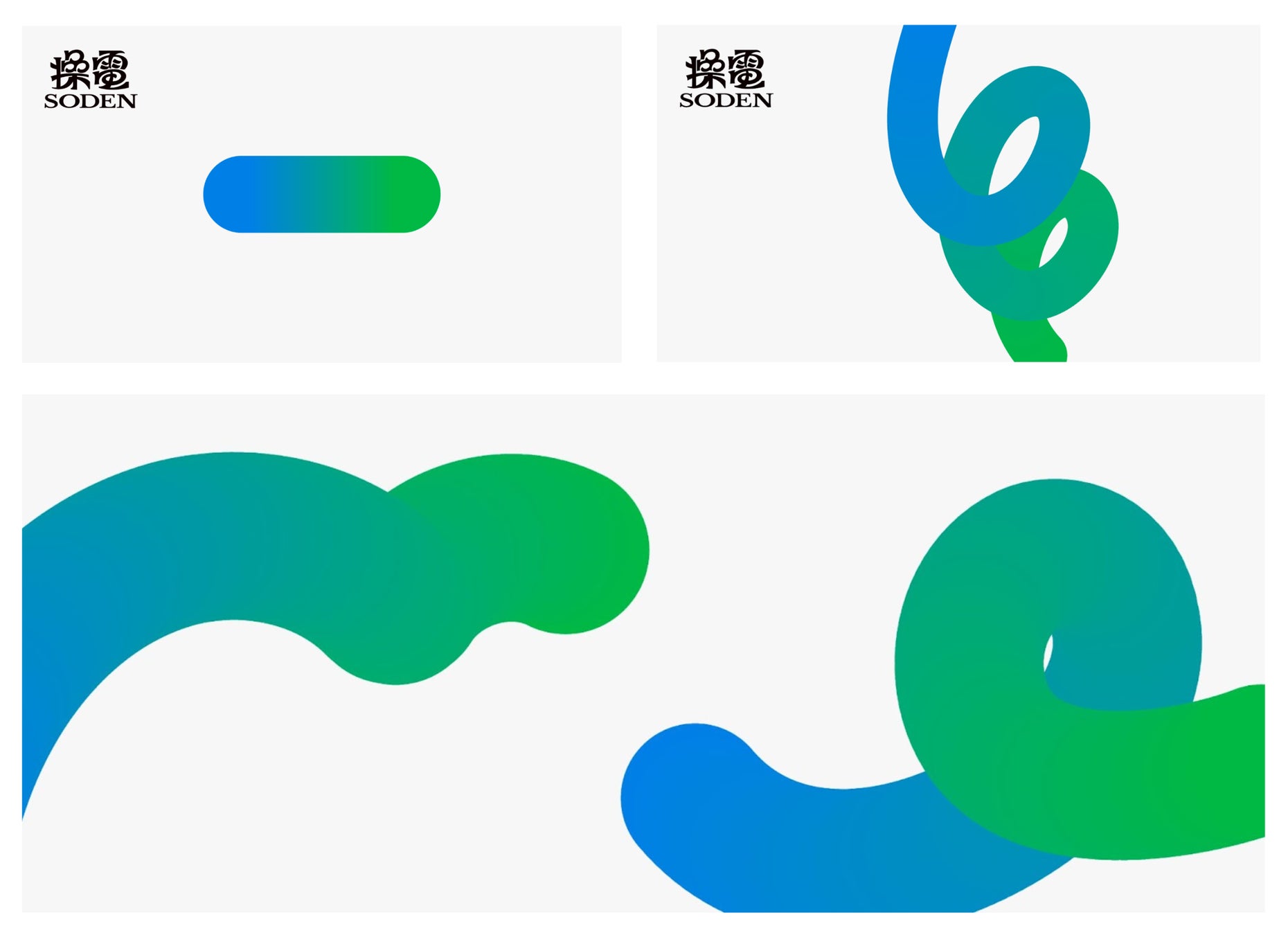 また、ビジュアル・アイデンティティには、旧ロゴから継承したグリーンから青へのグラデーションを用いた有機的なオブジェクトを採用しました。エネルギーの流れやハードウェアとソフトウェアの融合、多様な事業領域の繋がりなどを表現しています。
