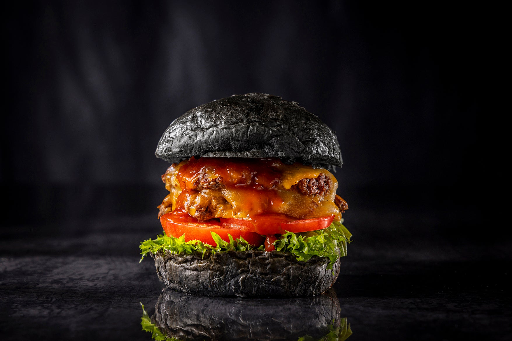竹炭入りのバンズとパティから滴るソースが、どこかハロウィンを思わせる演出に。お肉好きはもちろん、ハロウィン気分を楽しみたい方にもぴったりの、見た目と味の両方で楽しめる秋の主役級ハンバーガーです。