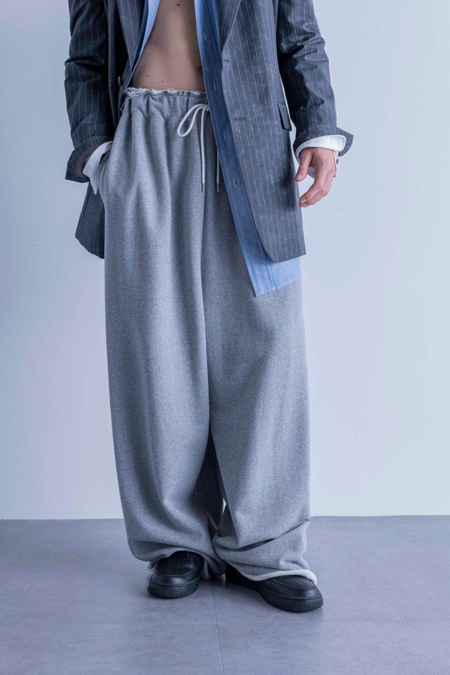 計算されたダメージワークと立体的な色落ちが織りなす存在感。特殊な縮絨加工により、経年変化を予め織り込んだワイドシルエット。形状が崩れにくく、独特の風合いを生み出す職人技が紡ぎ出す、本物を追求した唯一無二の一本。