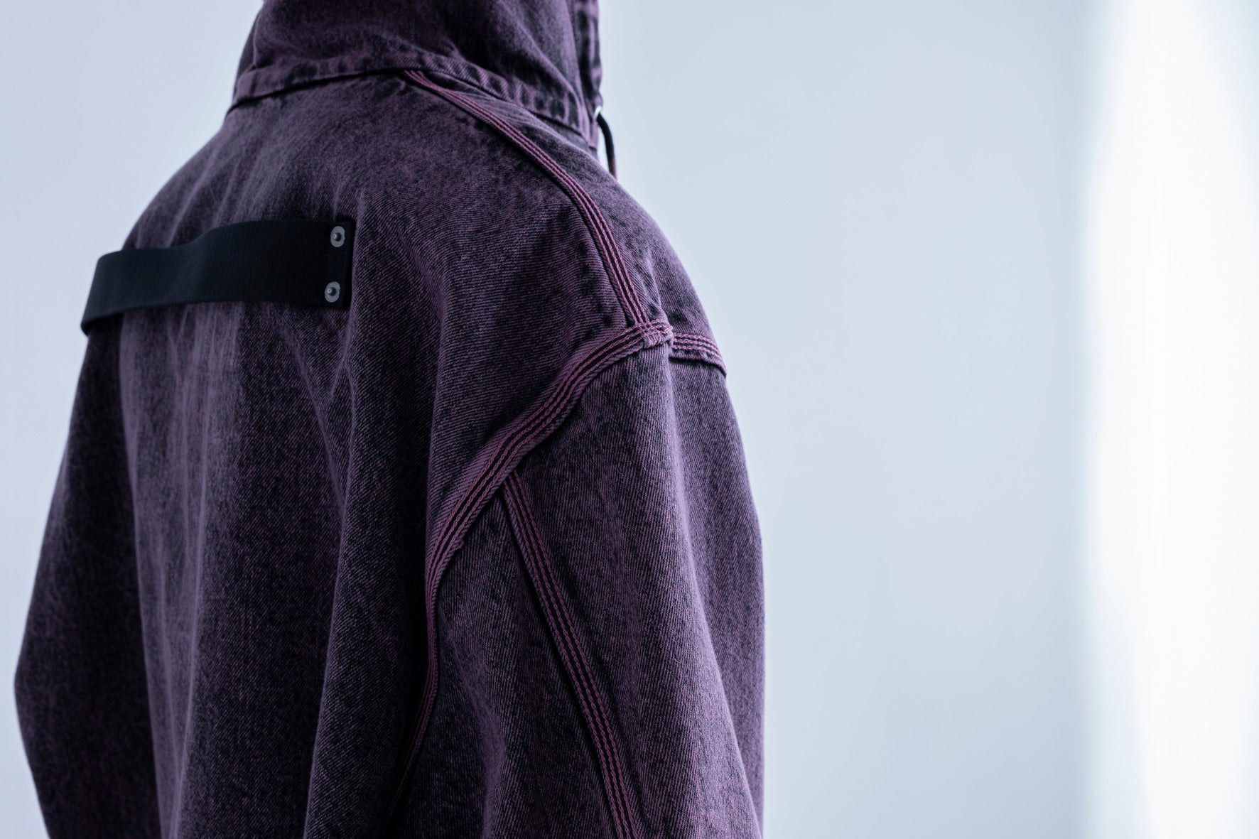 ワークウェアの血統を引き継ぎながら、既成概念を超えて進化したフーディ。ヴィンテージ仕様のファスナーと背面ベルトという工業的なディテールは、都市を生き抜くための装備。ケミカルウォッシュが創る独特の色彩と表情を見せる。