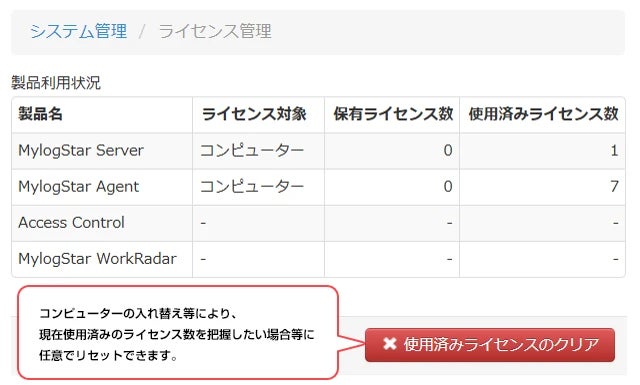 「使用済みライセンスのクリア」ボタンを追加 ※2