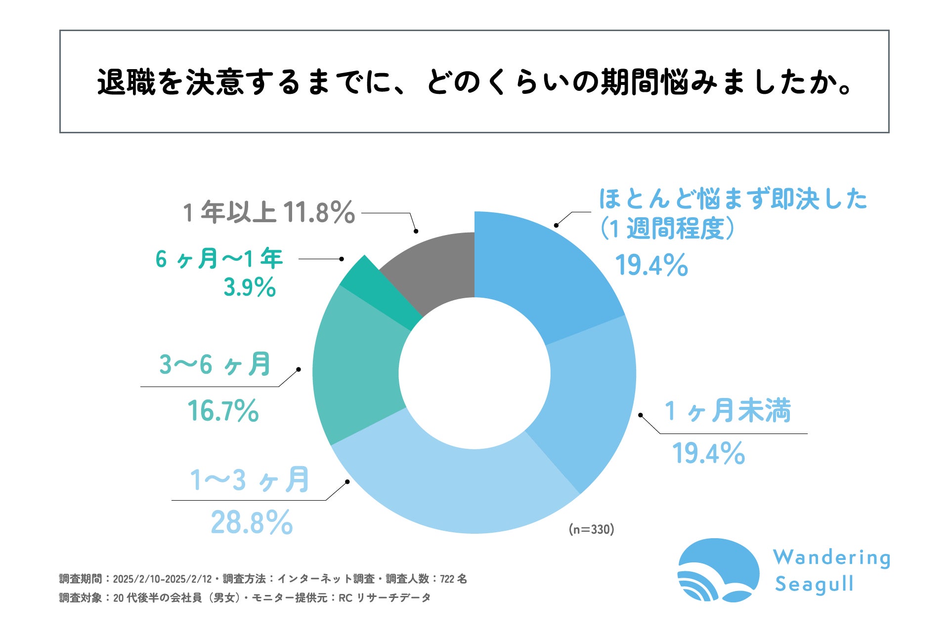 約6割の人は退職を決意するまでに、1ヶ月以上悩んでいる