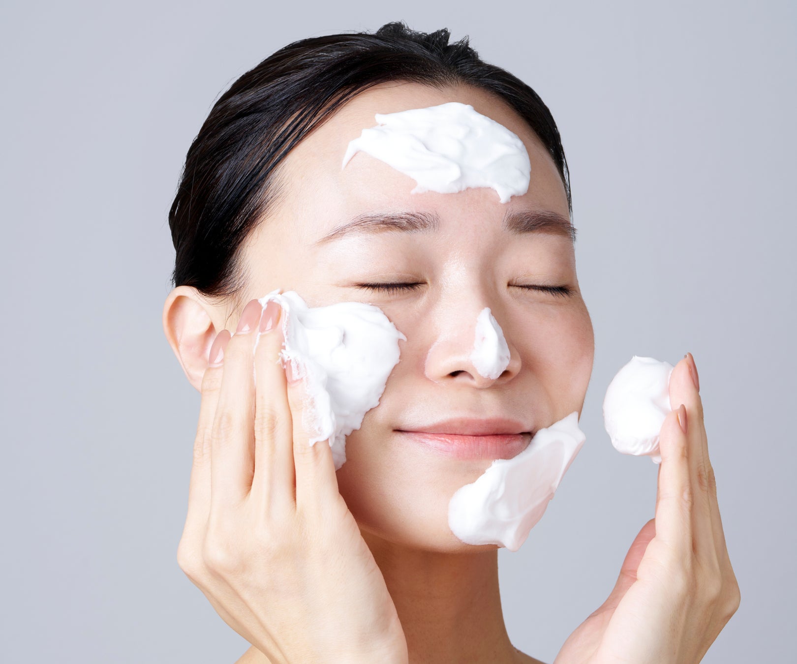 1~2分ほど置いた後、泡を肌になじませるように丁寧に洗い流してください。