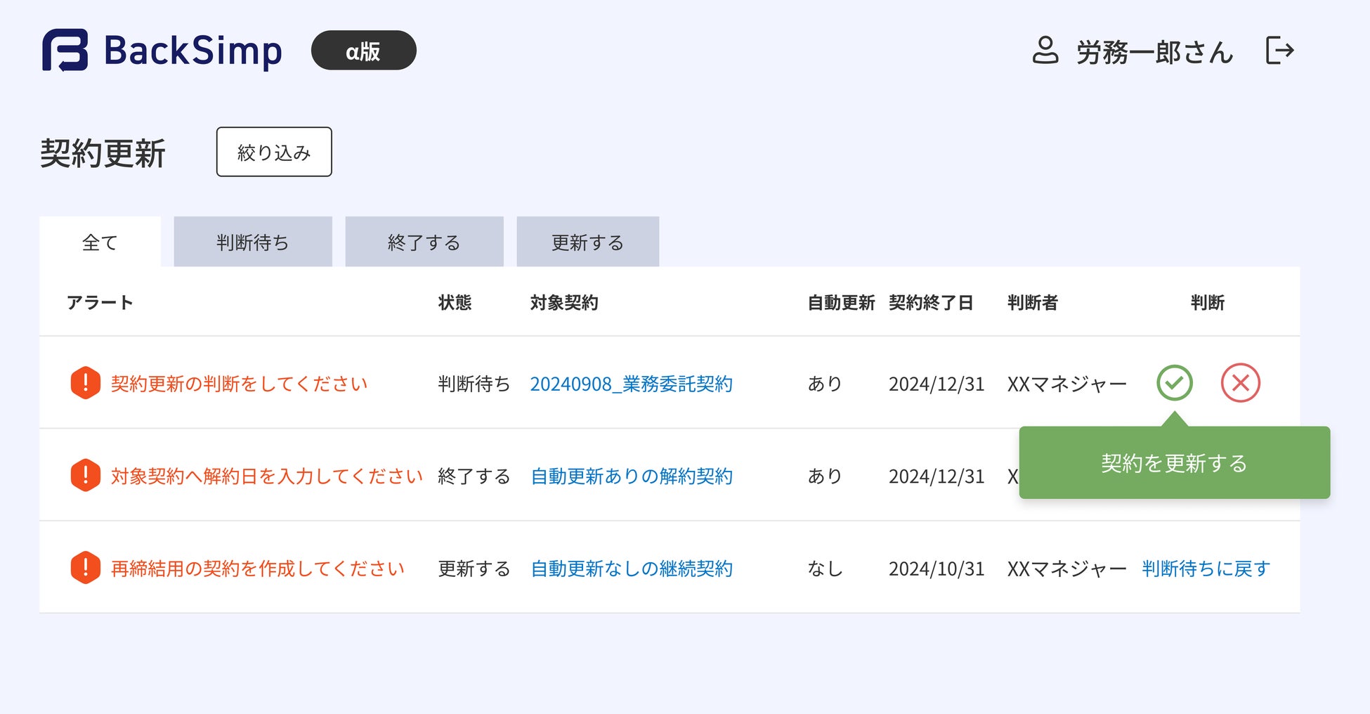契約内容と請求書の整合性を確認するのに時間がかかっていましたが、BackSimpのおかげでチェックの時間が大幅に削減できました!稼動や納品など、複数の契約がある委託者の管理についても、契約通りの請求書を作成してくれるので安心できます。