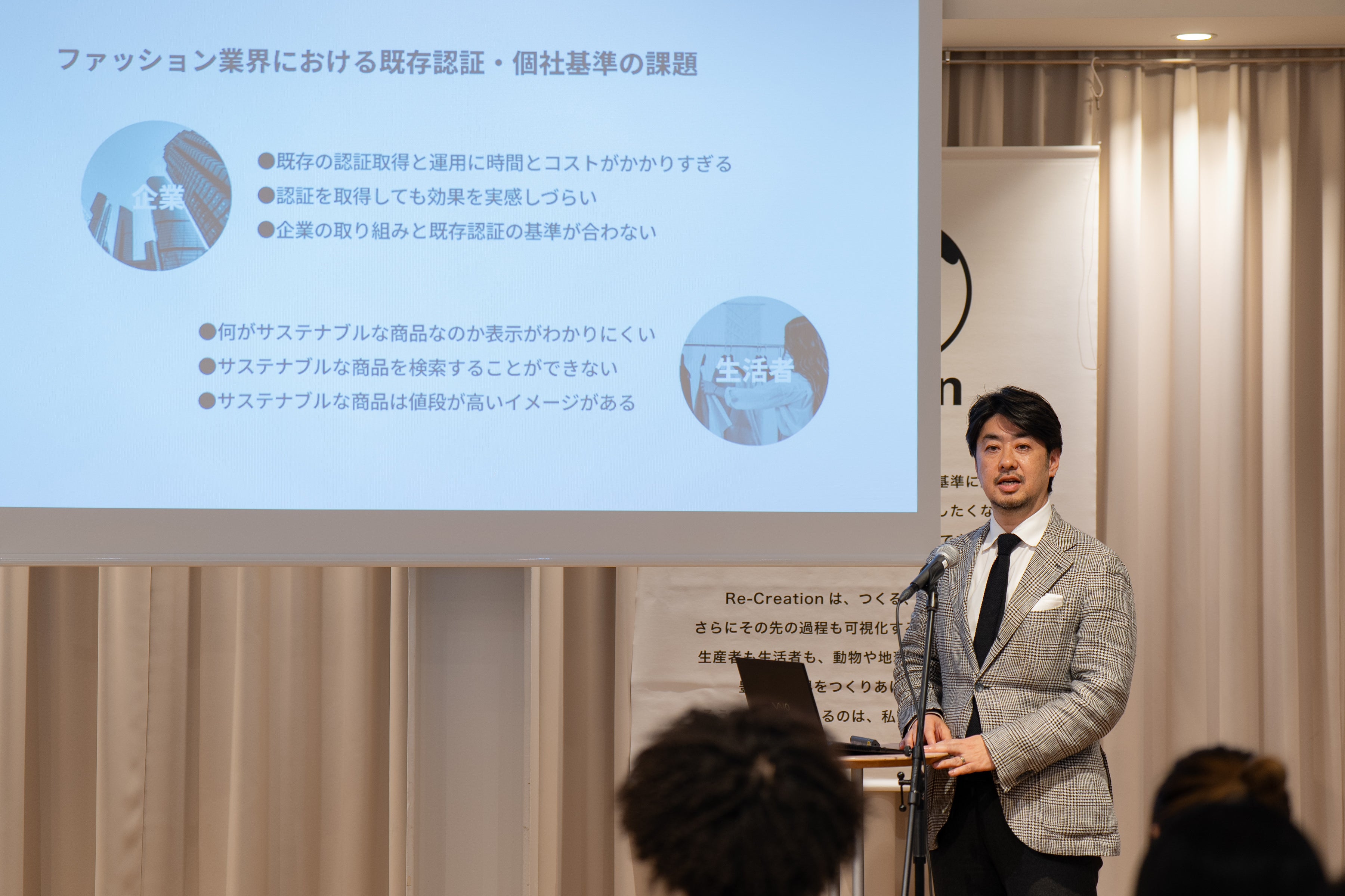 山下からは、「Re-Creationは作る側の取り組みを可視化し、サステナブルであることが選ぶ理由になりたいという想いから認証制度を作りました。認証を作ることだけではなく、使われ続けることを価値としたい。そして、その選択が特別な選択ではない世界を目指したい」と語りました。また、認証申請企業が拡大したことが報告されました。サービス開始から着実に導入企業が増加しており、アパレル業界におけるサステナビリティへの関心の高まりを示しています。
