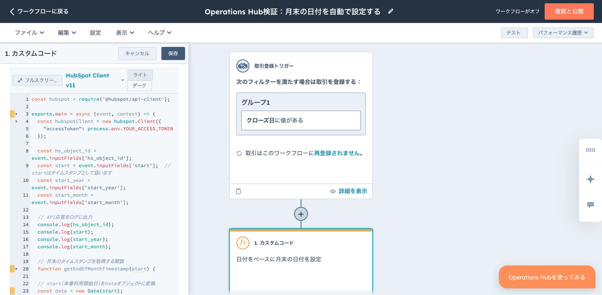 ・HubSpot内部で「月末の日付を算出」「月初の日付を算出」