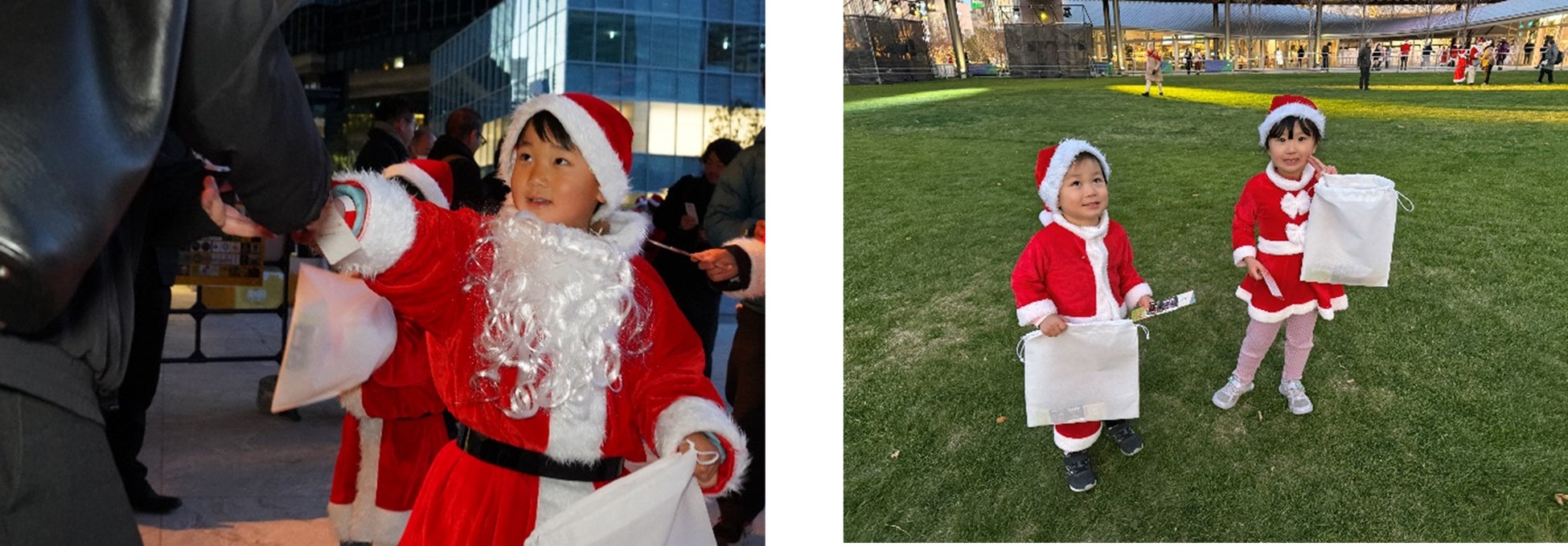 参加者からは、「普段働いているまちで自分がサンタクロースになって、おもてなしをするのは新鮮で嬉しかったです」、「一家で参加しましたが、家族みんなでサンタクロースになれてクリスマスの良い思い出ができました」など、満足する声が多数寄せられました。小学生以下のお子さまも多く参加し、「サンタさんの格好をして、プレゼントを渡すのが楽しかったです。プレゼントは全部配り切りました!」と大人も子どもも楽しめるイベントとなりました。