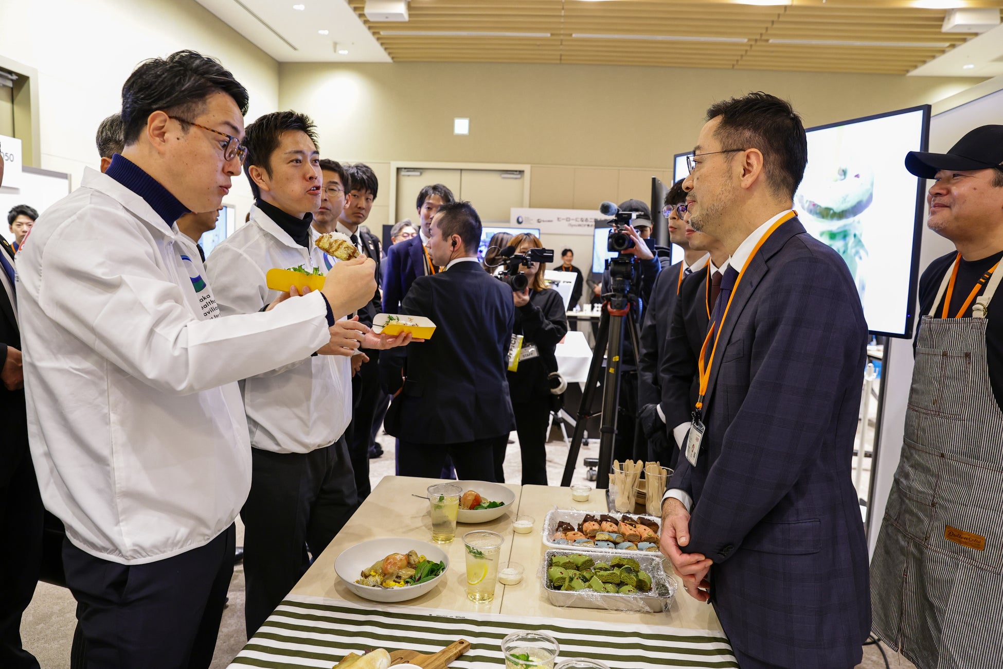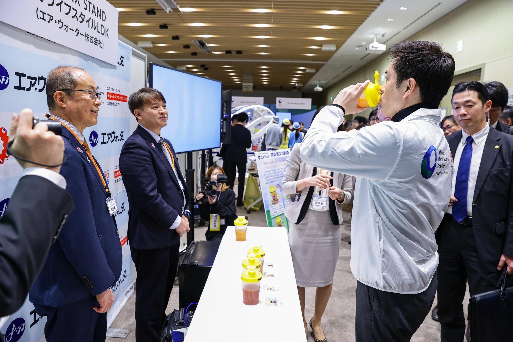 会場後方に設置された主催者ブースや協賛企業のブースエリアでは(全17ブース)、パビリオンで体験できるコンテンツの一部を関係者・メディアの皆様にいち早くプレ体験いただき、開催が迫る大阪・関西万博への期待が一段と高まる会となりました。