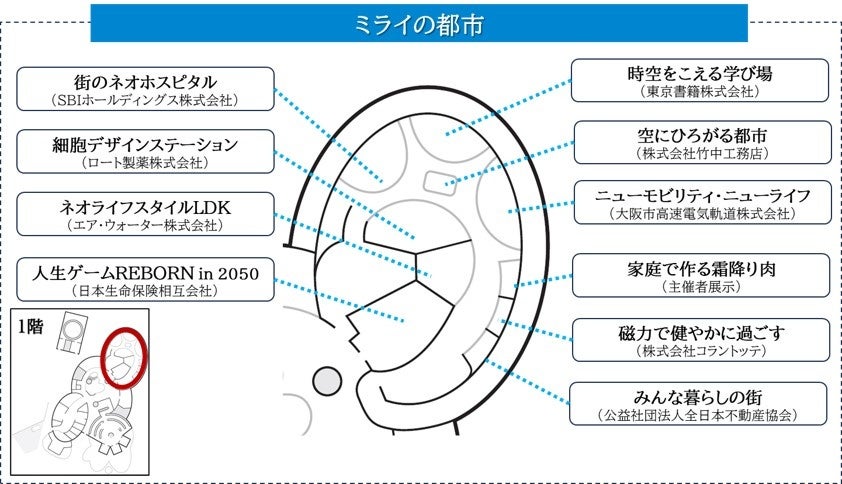 大阪が持つ強みを活かして、最先端の医療技術やライフサイエンス産業が創り出す近未来への期待を高め、さらには食や文化、観光などによる交流を促進する場となるよう、『ミライの都市生活』をテーマに展開します。