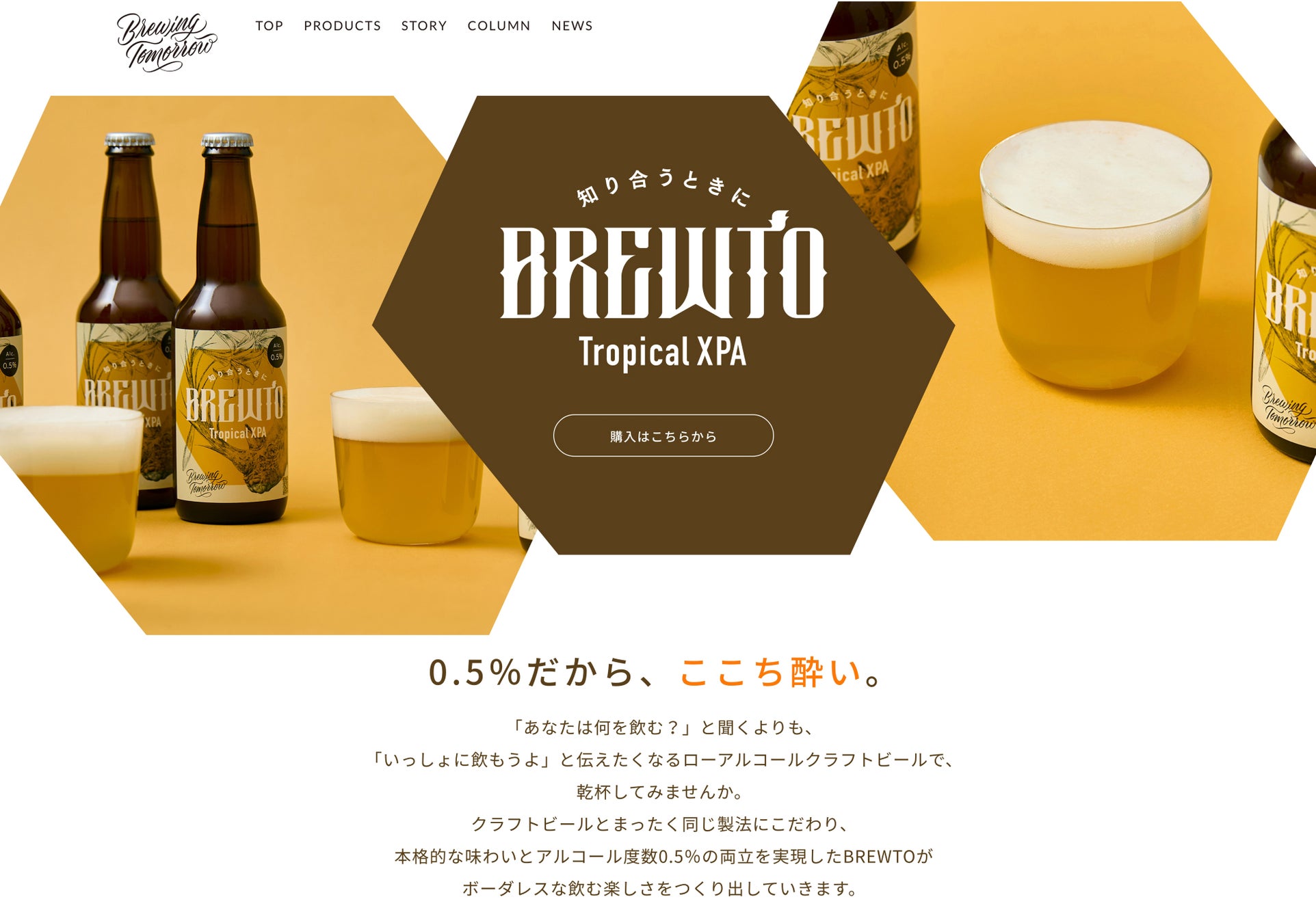 この度、ブランド&クリエイティブエージェンシー・株式会社KITO(本社:東京都港区、代表取締役:木原かえ)は、クラフトドリンクブランド『Brewing Tomorrow』を立ち上げ、第一弾としてクラフトビールと同じ素材と製法を用いて開発した、アルコール度数0.5%のローアルコールクラフトビール『BREWTO(ブリュート)Tropical XPA』の公式オンラインショップを10月30日(水)14:00よりオープンいたします。