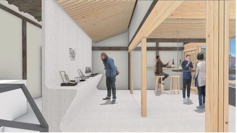 開放感を感じられるよう入り口はガラス張りにし、奥に商品を陳列するディスプレイ台を置きます。入口付近では、チョコレートと『風の森』を楽しめるテーブルを用意し、コミュニケーションが取れる場所にしたいと考えています。