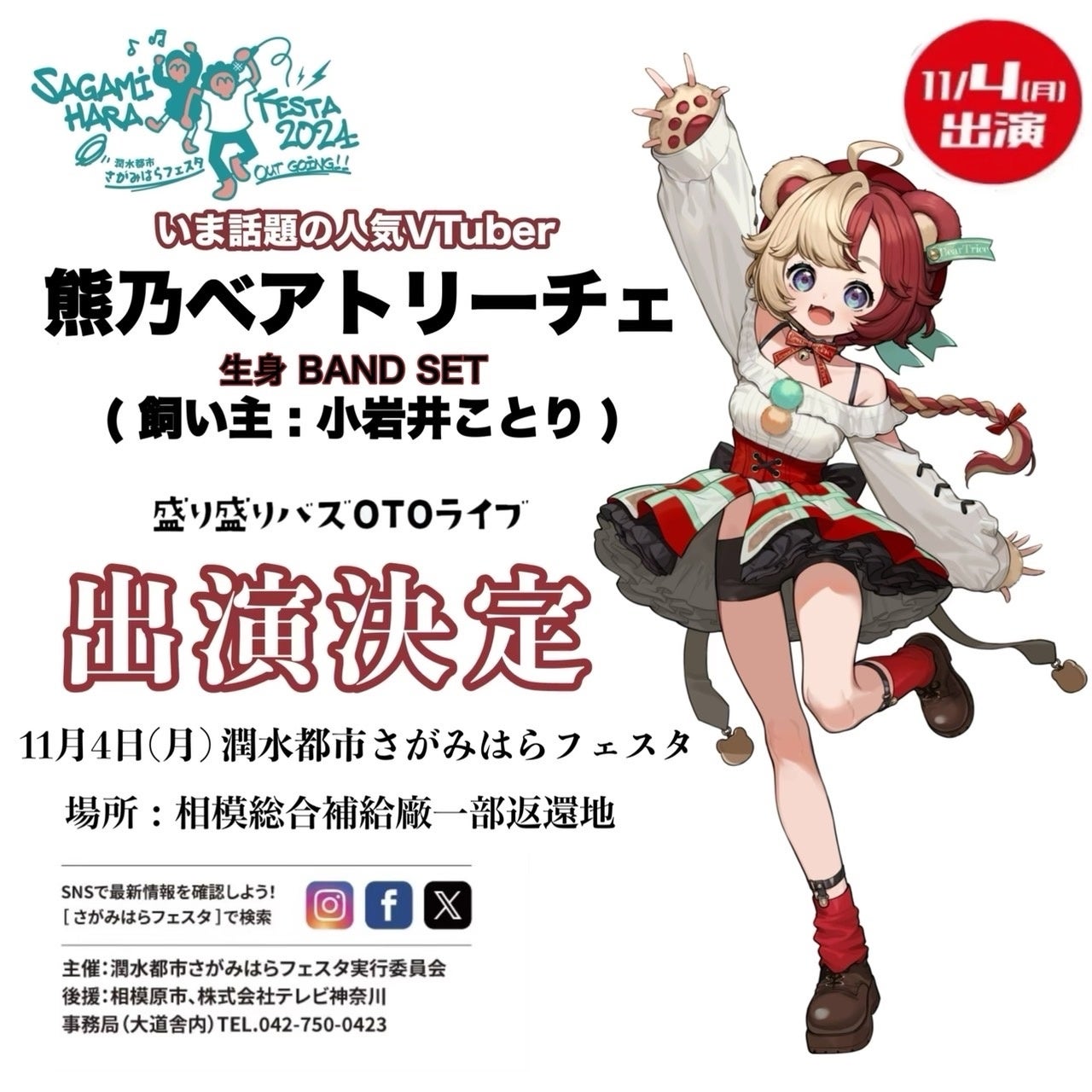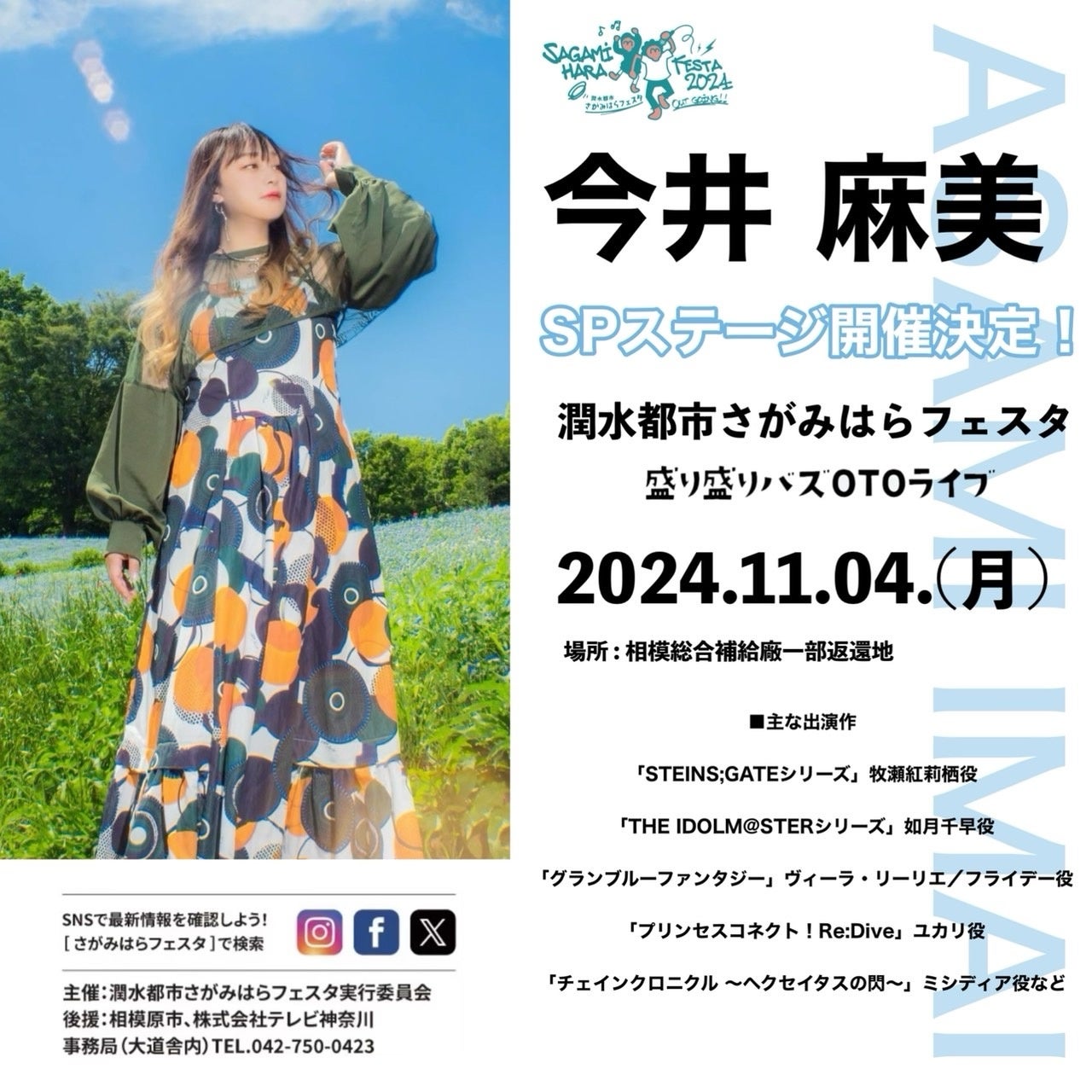 声優の今井 麻美・平山 笑美・熊野ベアトリーチェがステージ出演決定!11月2日~4日開催の大型野外イベント『潤水都市さがみはらフェスタ2024 Out Going!!』