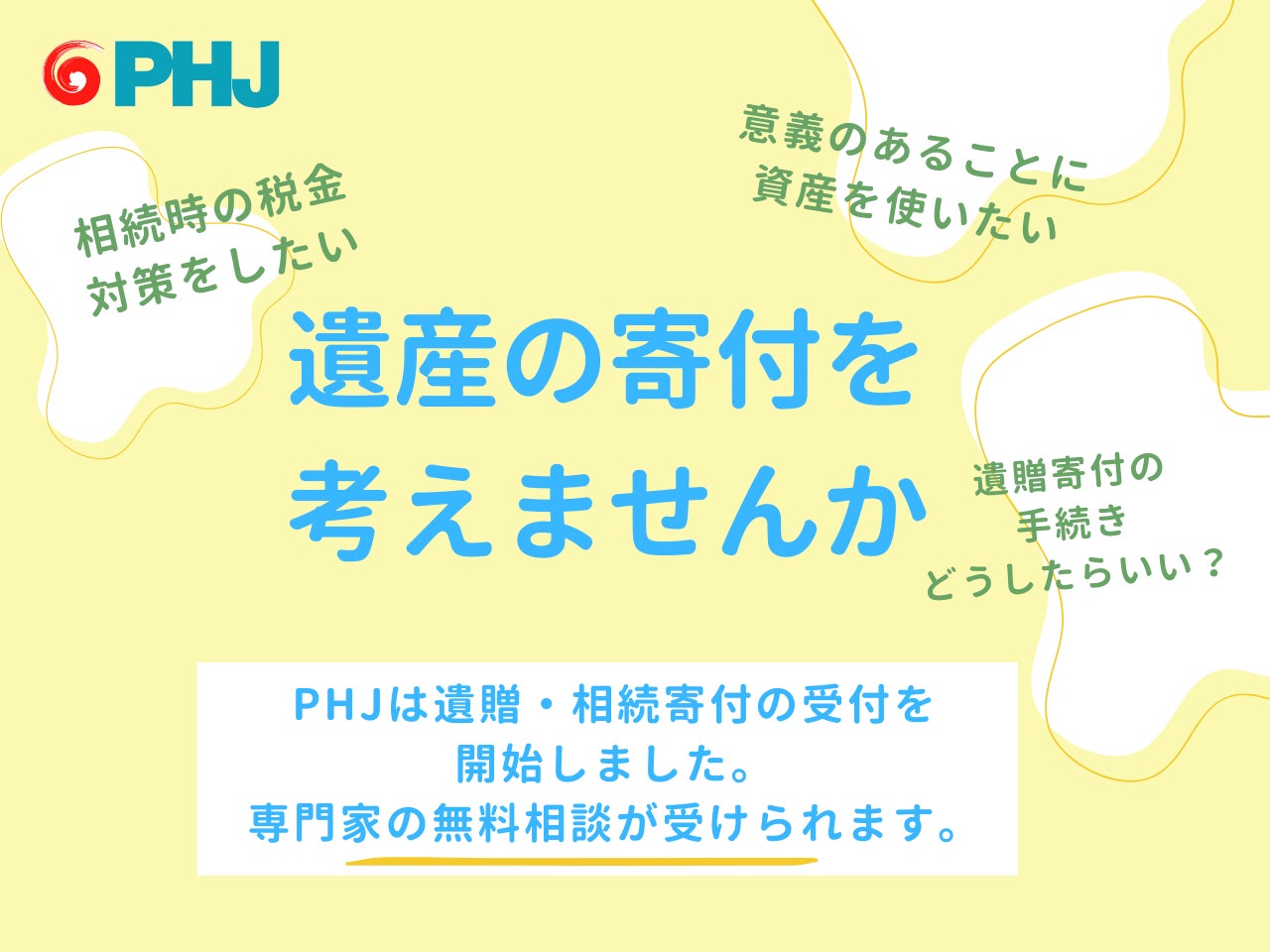 なお、認定NPO法人であるPHJに遺贈・相続いただいたご寄付には、相続税がかかりません。