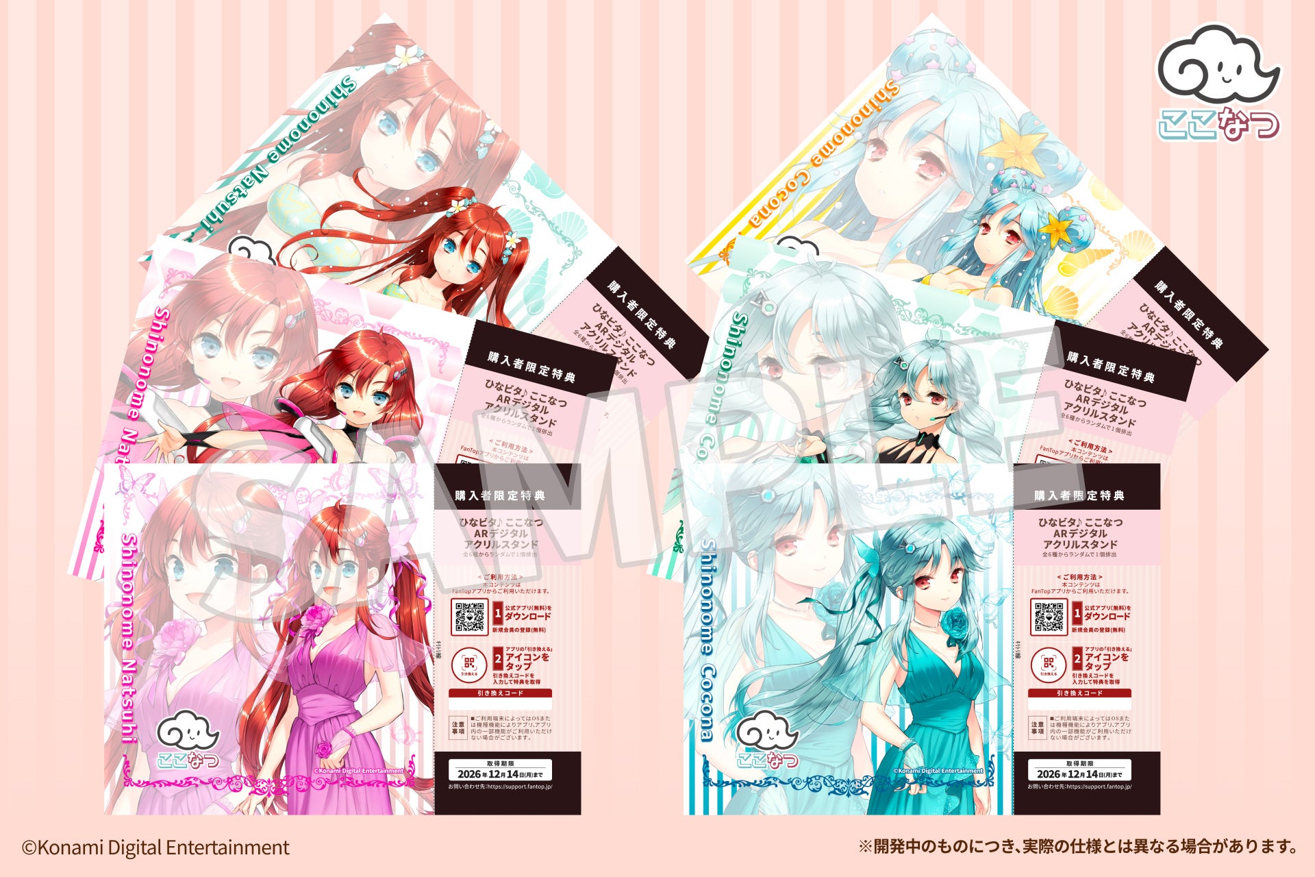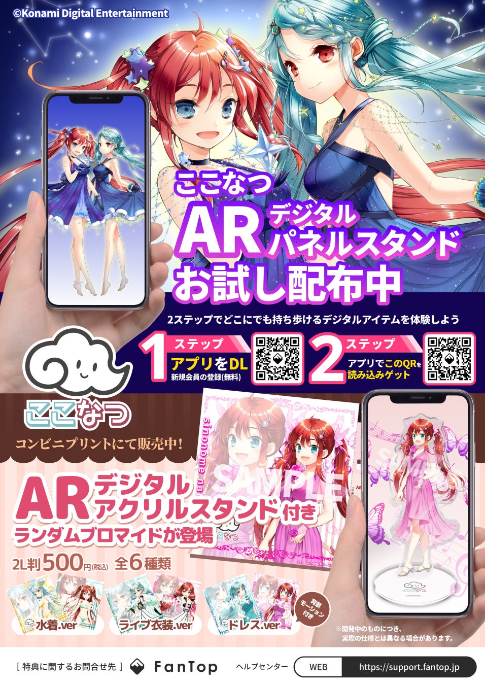 「ここなつ」メンバーの「東雲夏陽」と「東雲心菜」のARデジタルアクリルスタンド付きのコンビニプリントブロマイド(全6種)を販売!