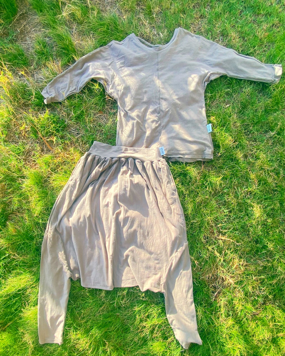 カットソーやサルエルパンツも、機能性とデザイン性を兼ね備えたアイテムとして同時発売いたします。染色には、京都ならではの「新万葉染め」の技術を採用しています。「新万葉染め」は、古来から使用されてきた天然色材を活かし、草木や虫など自然由来の原料を用いた伝統的な染色法です。