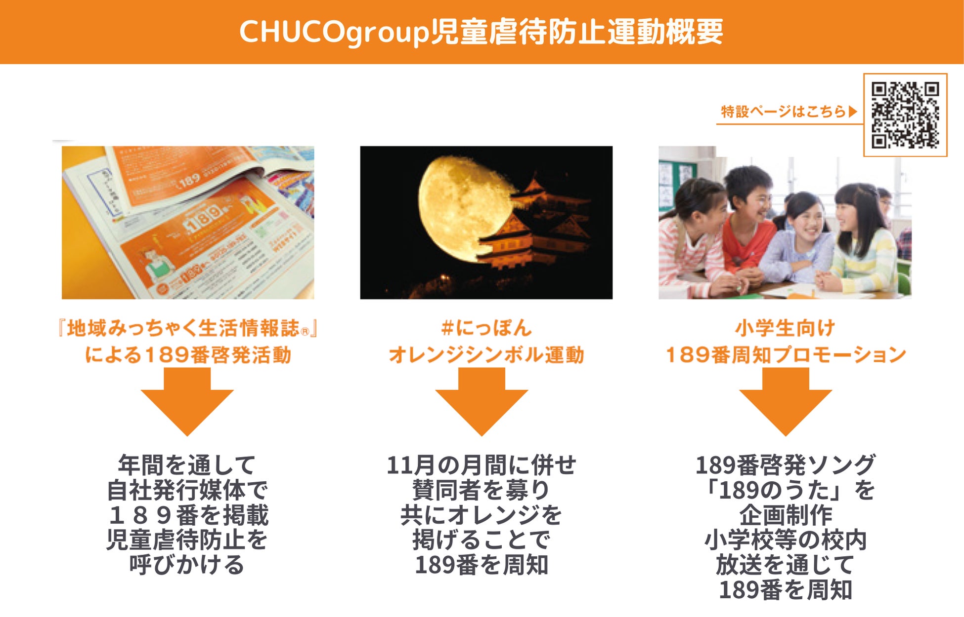株式会社中広(本社:岐阜市/代表取締役社長:大島 斉)をはじめとするCHUCOgroupでは、CSR活動として年間を通じて児童虐待防止に取り組んでおり、特に11月はこども家庭庁が実施する「オレンジリボン・児童虐待防止推進キャンペーン」と連動し、本運動を全国で展開しています。