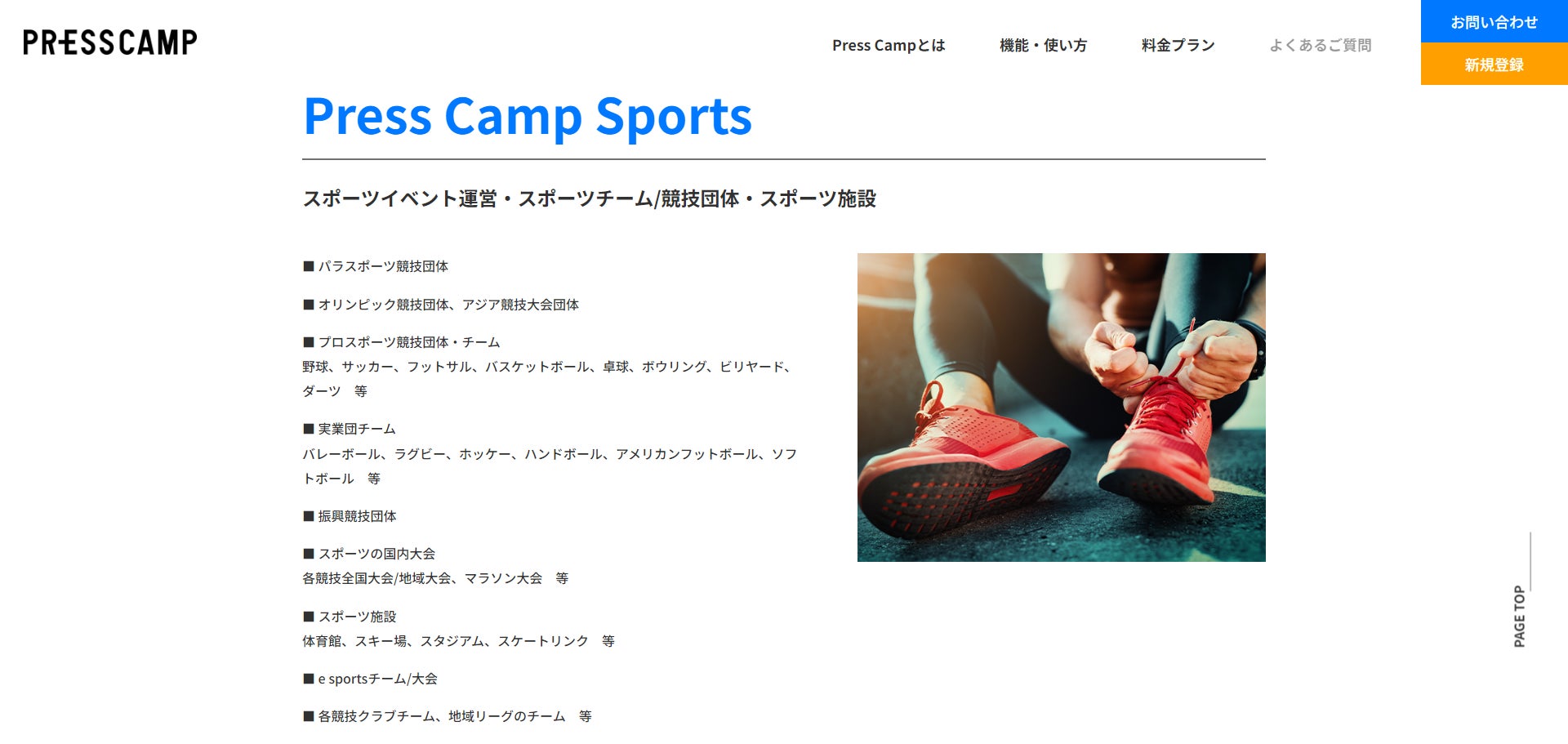 「PRESS CAMP Sports」 スポーツ団体、競技や関連イベントカテゴリー