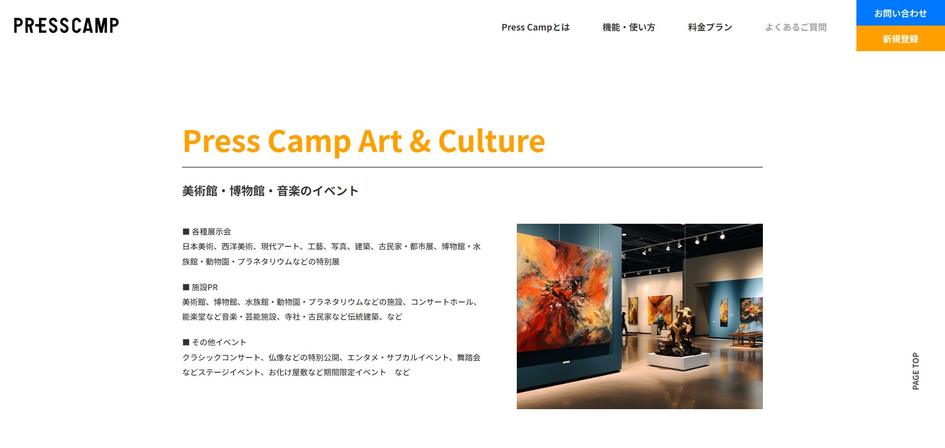 「PRESS CAMP Art & Culture」 美術館・博物館・音楽等、文化施設や関連イベントカテゴリー