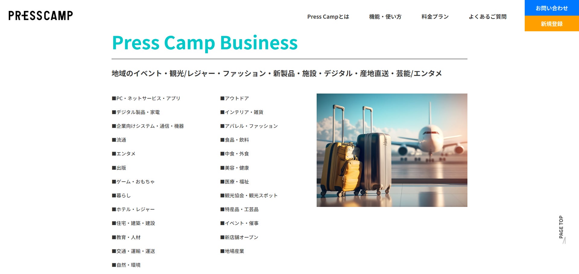 「PRESS CAMP Business」 その他全国各地の企業・団体、製品、レジャー情報など