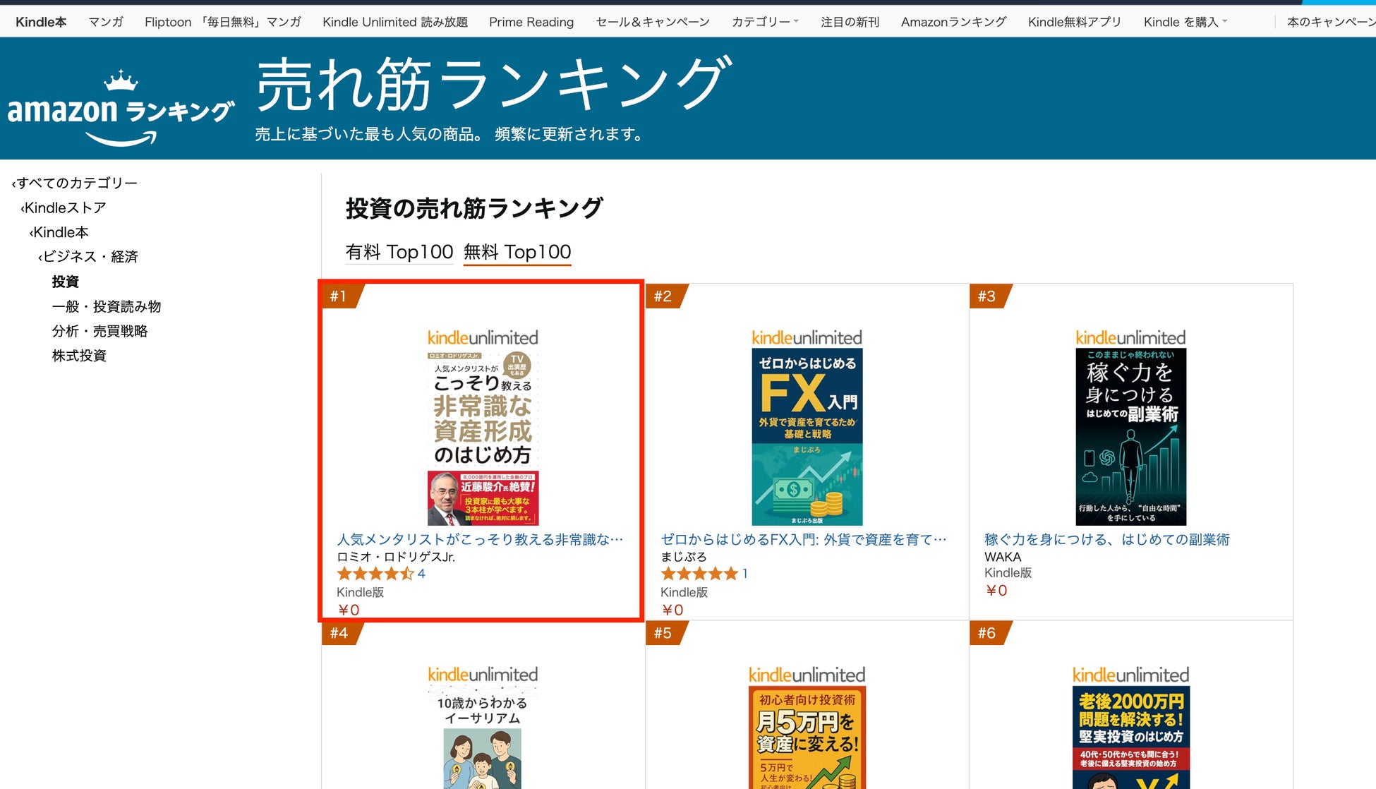 Amazon Kindle無料書籍「投資部門」にて第1位を獲得しました!