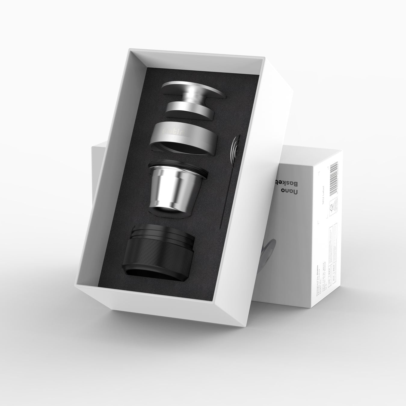 通常のアダプターではコーヒー豆が8gまでしか入れられませんが、OutIn Nano Basket Plus(アウティンナノバスケットプラス)を使用することで2倍量(16-18g)のコーヒー豆を入れることができます。