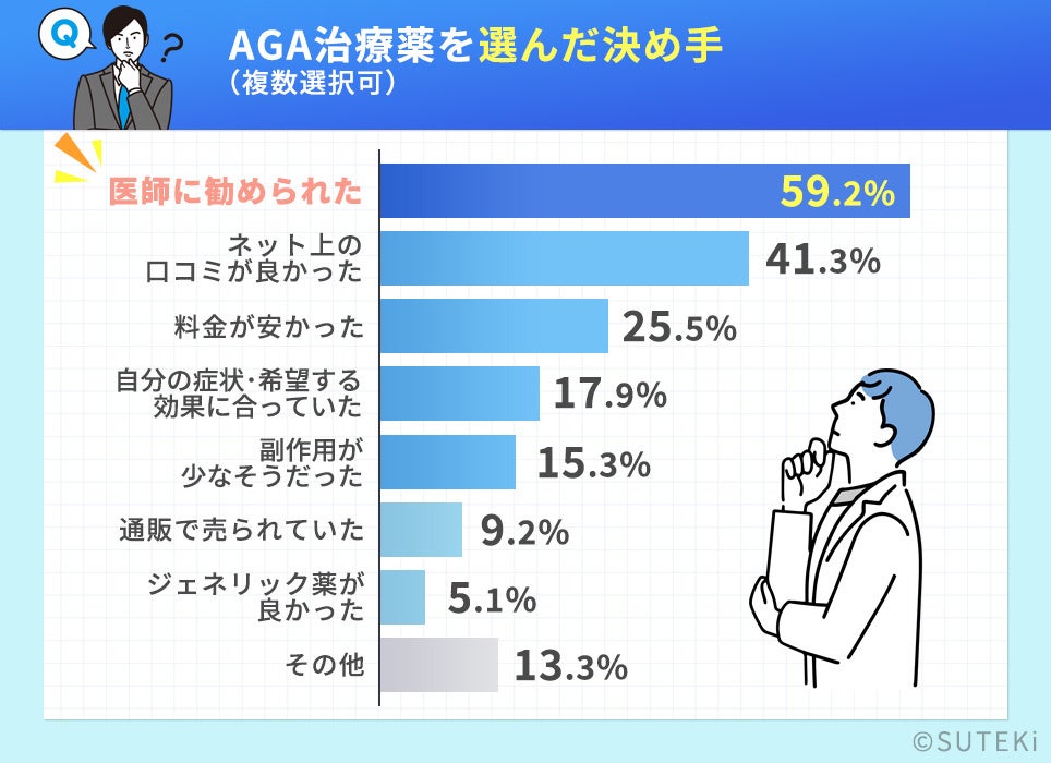 また、AGA治療薬を選んだ決め手をリサーチした結果は上記の通りです。