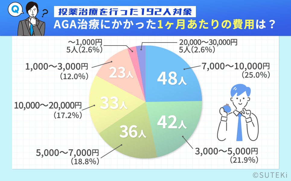 弊社調べでは、AGA治療薬は月々7,000円程度で購入でき、8割以上の方が治療効果を実感できたと回答していました。