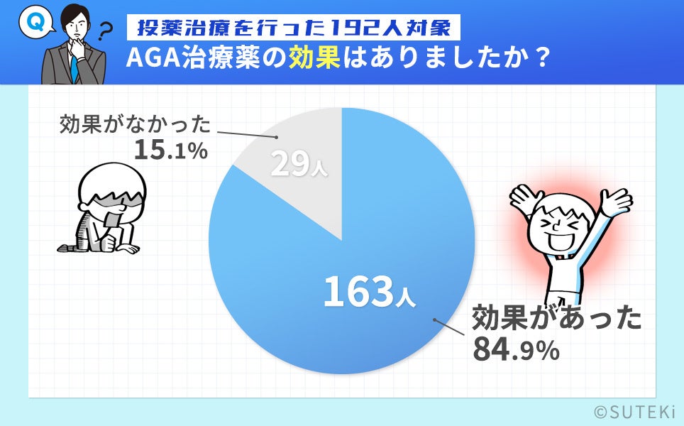 AGA治療薬の効果があったと回答した方は85%!ほとんどの方が治療効果を実感