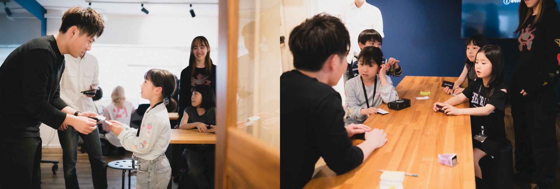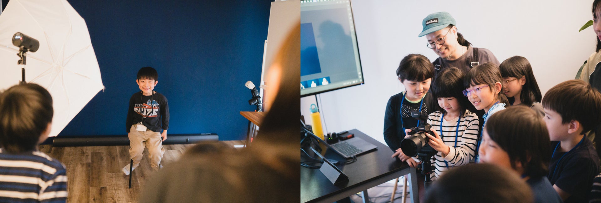 今回のワークショップには小学1年〜4年生の20名にご参加いただきました。学年によっては難しい内容もあったと思いますが、みなさん非常に真剣にそれぞれの体験に取り組み、最後にはみんなが手を挙げて、「プロのカメラで撮影ができて楽しかった」「自分らしいデザインができて嬉しかった」など今日楽しかったことや学んだことをたくさん発表してくれました。