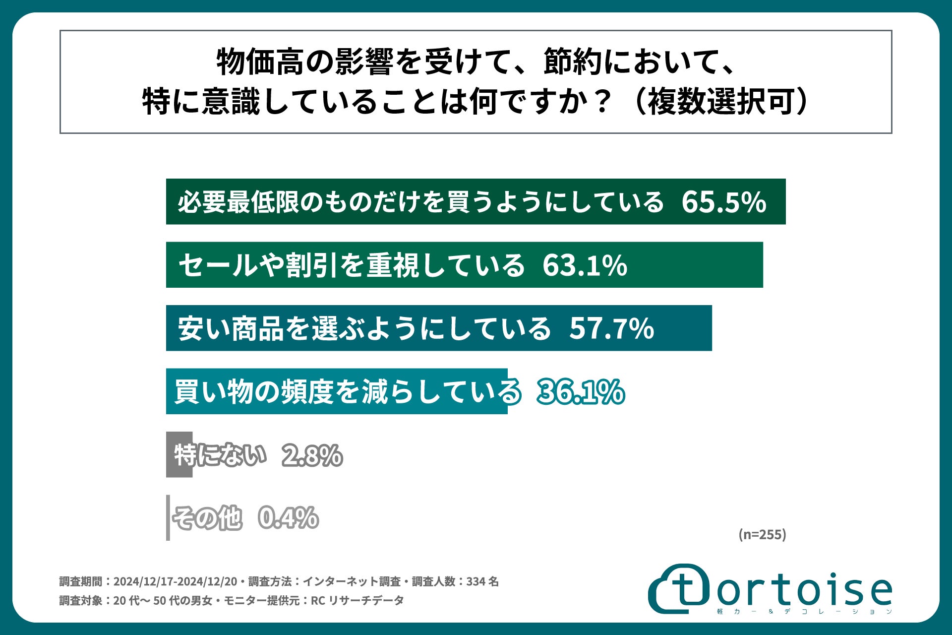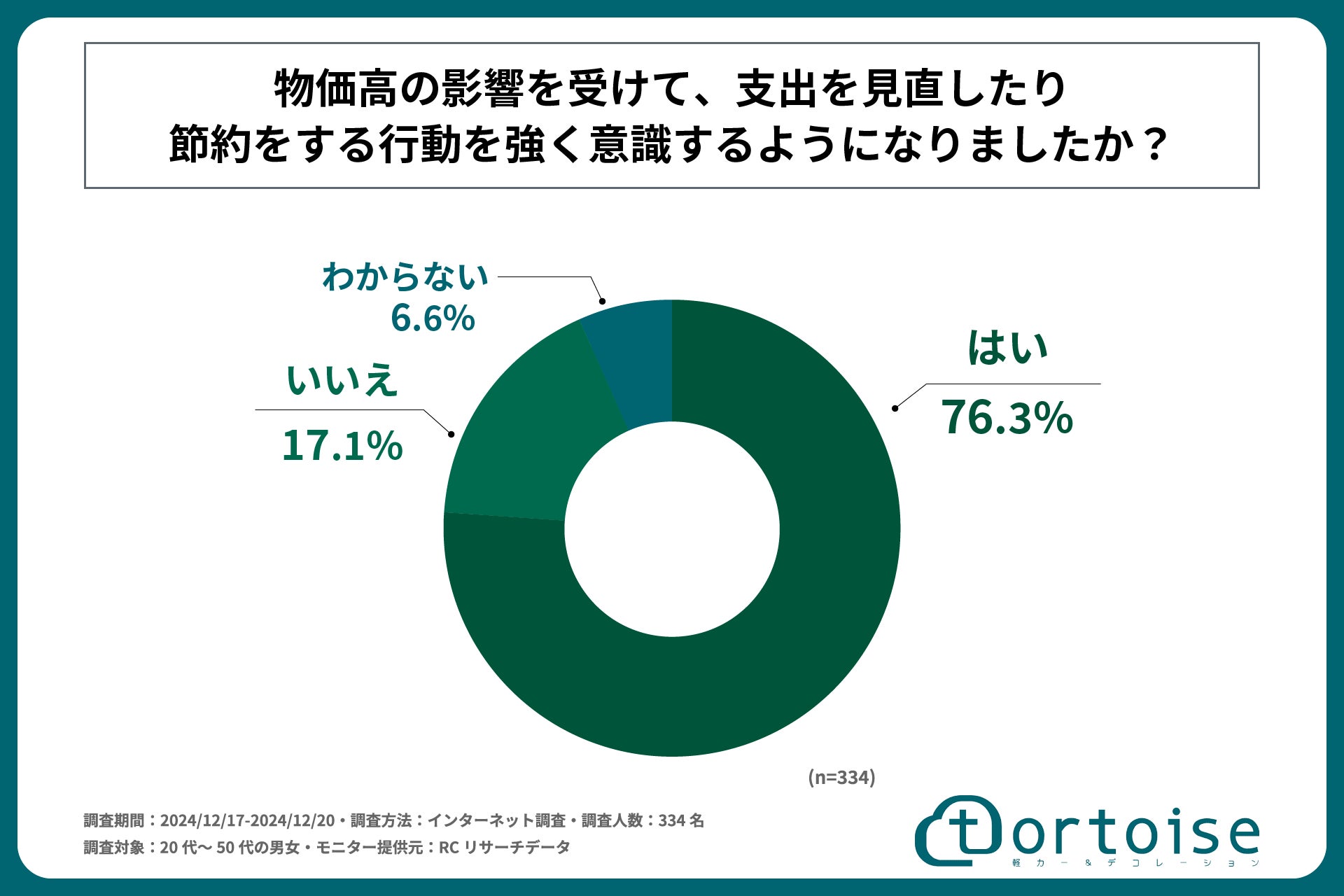 株式会社トータス(本社:神奈川県大和市、代表取締役:村野 公紀)が展開する、軽自動車専門の中古車・届出済未使用車販売店「tortoise(トータス)」は、20代~50代の男女を対象に「物価高による消費行動の変化」に関する調査を実施しました。