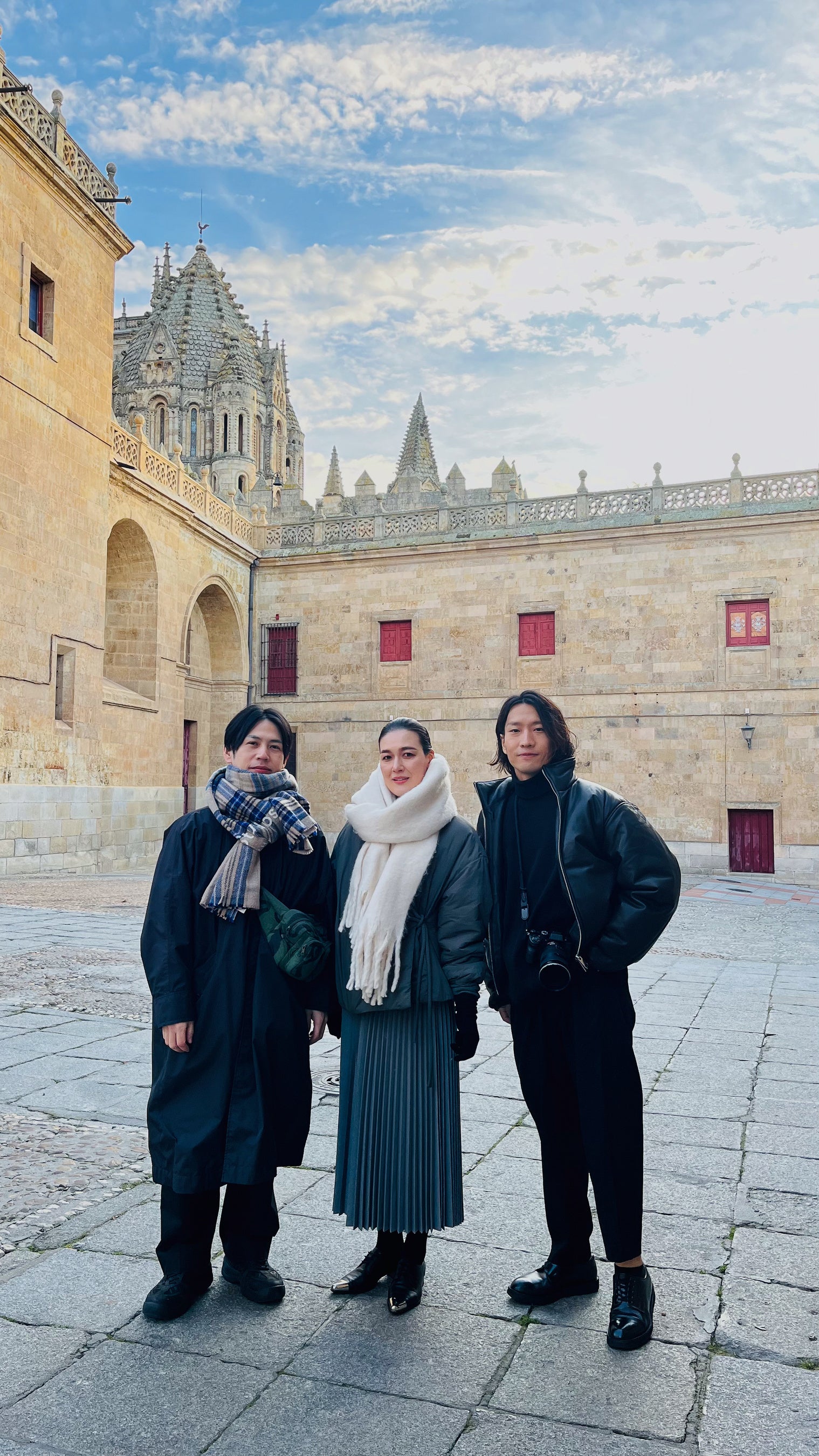 撮影初日には、「文化」と「味覚」をテーマにしたシーンが撮影されました。「文化」篇の1シーンを撮影した吉田は「イベリコハムはヨーロッパの食文化の真髄」というテーマのもと、歴史あるサラマンカ大学や緑豊かな中庭、サラマンカ中心街のメインストリート、さらにはヨーロッパで最も美しい広場のひとつとされるマヨール広場を舞台に、その壮大な文化的背景を表現しました。一方、「味覚」篇の1シーンを撮影した諏訪は「イベリコハムは信じがたい味と香りの広がり」をテーマに、地元の市場や生ハム専門店、そしてシェフが料理を提供するキッチンスタジオで、イベリコハムの豊かな味わいを視覚的にも伝える動画が撮影されました。