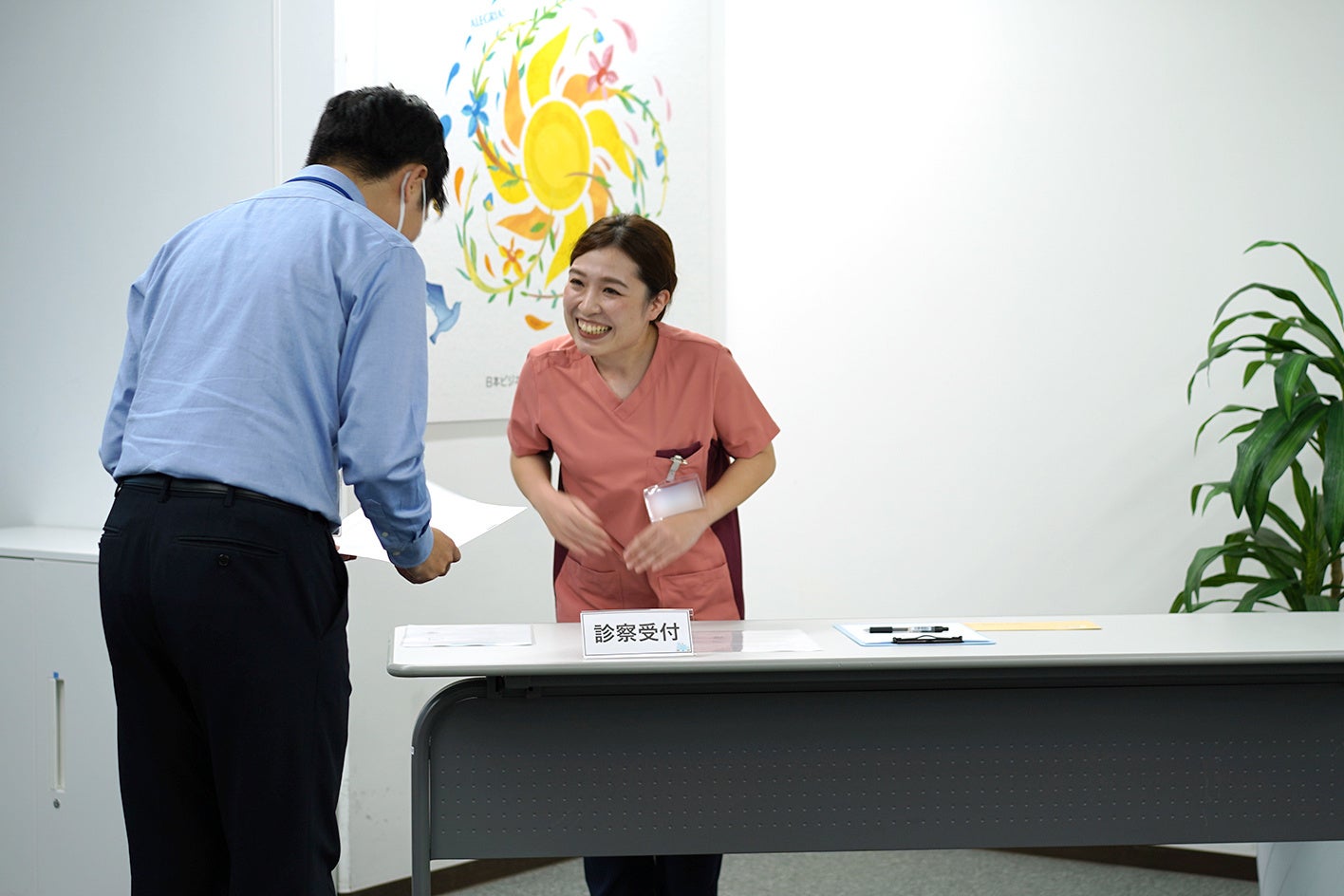 3名の患者様(A: 初診患者様、B: 説明不足によりご不満を抱える患者様、C: 診療に長時間かかった患者様)からのお声がけに対し、寄り添った応対ができているか、その際の表情はどうか、言葉遣いや所作は丁寧かを審査員がチェックしました。
