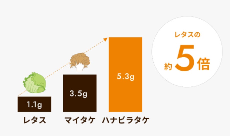 今話題!腸活におすすめの発酵性食物繊維、水溶性食物繊維の「βグルカン」が豊富に含まれているのもハナビラタケの大きな特徴。