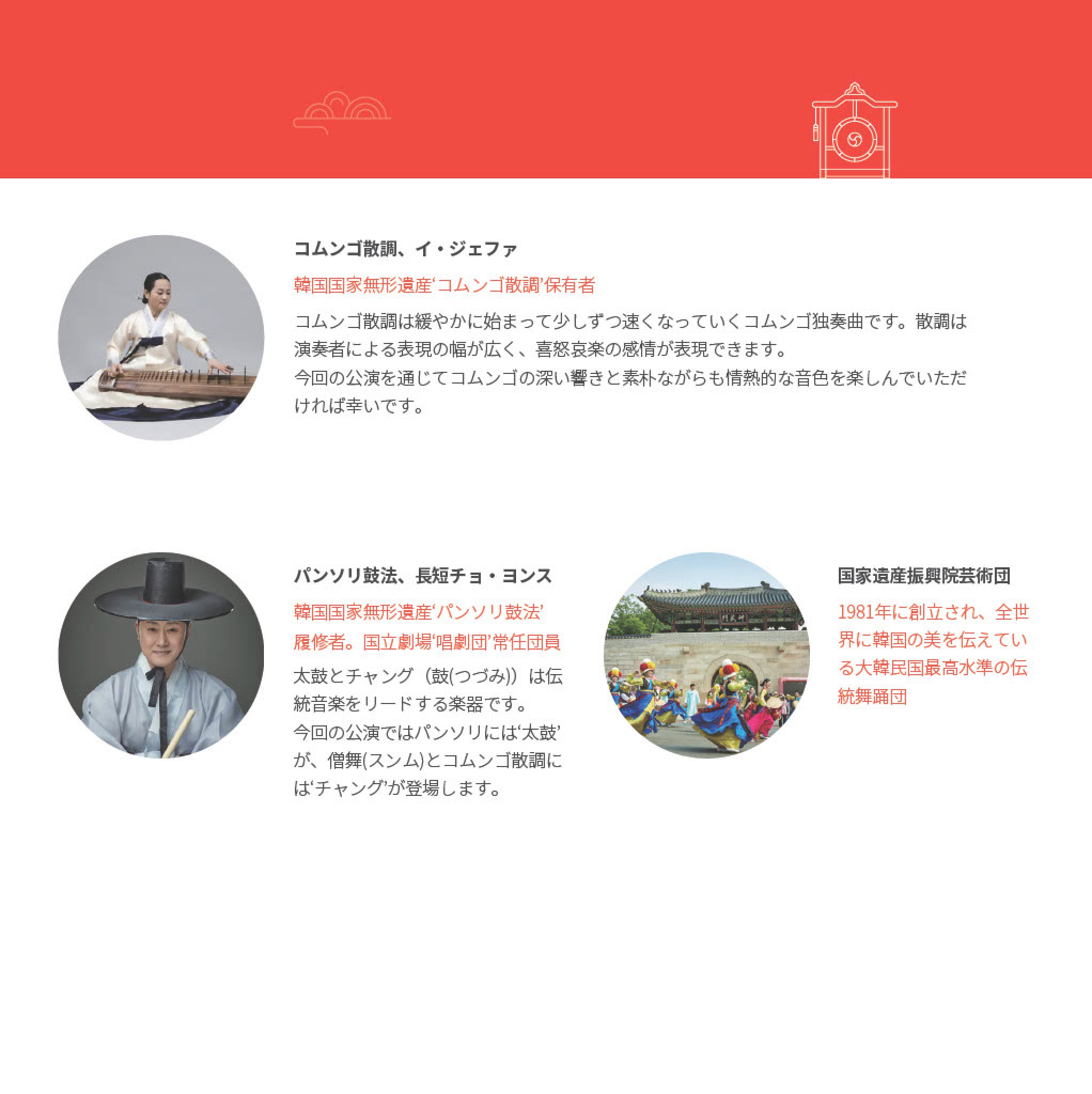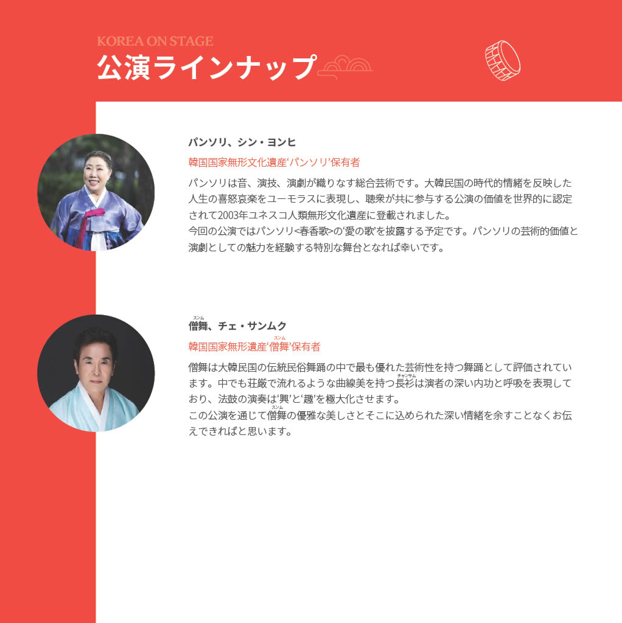 韓国の伝統芸能の名人による舞台、『KOREA on Stage – Ye-In (イェイン)(芸の名匠)』& No-Ri (ノリ)(民俗芸能)