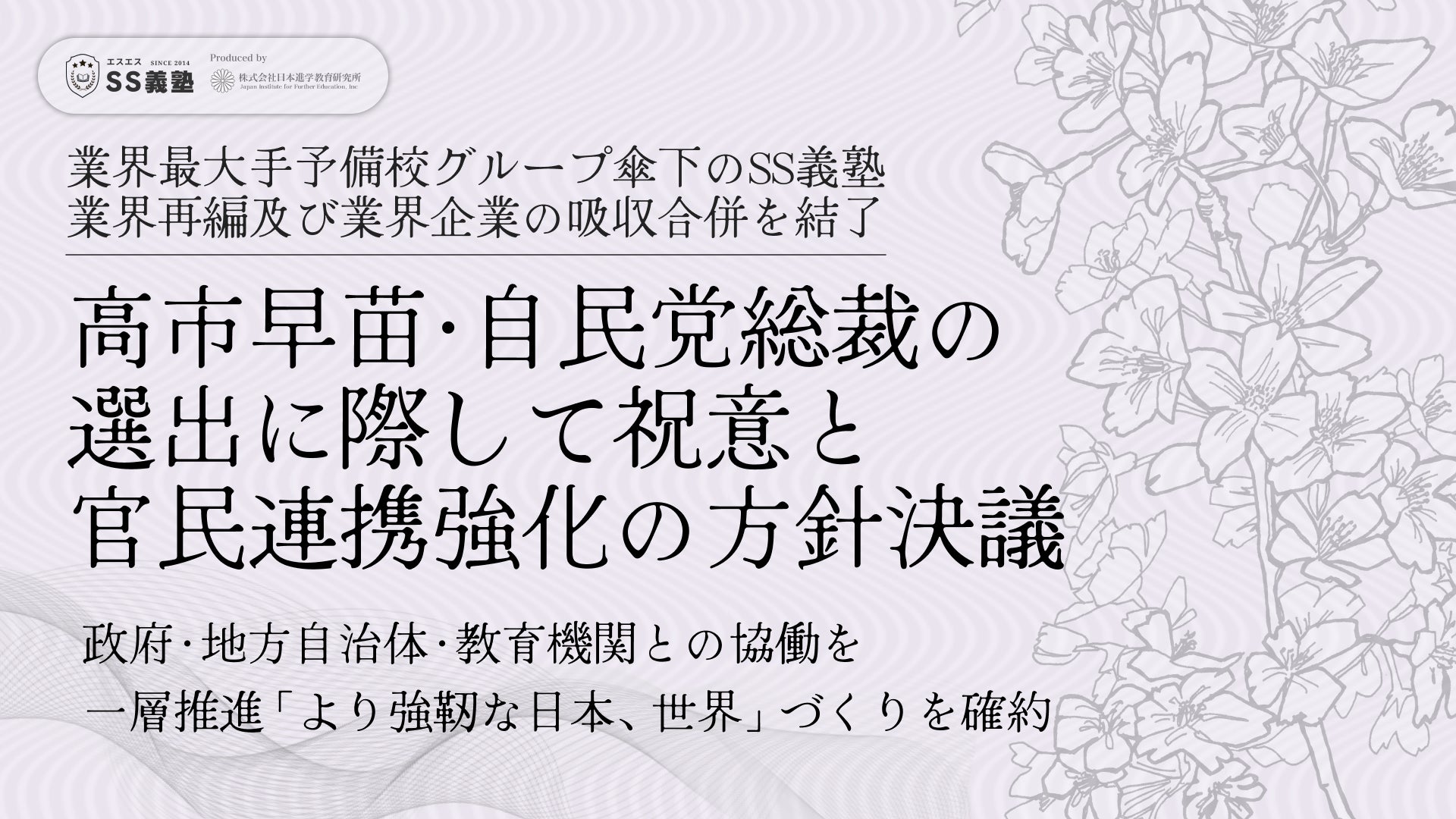 《祝電》業界最大手予備校グループ傘下のSS義塾が高市早苗・自民党総裁の選出に際して祝意と官民連携強化の方針決議