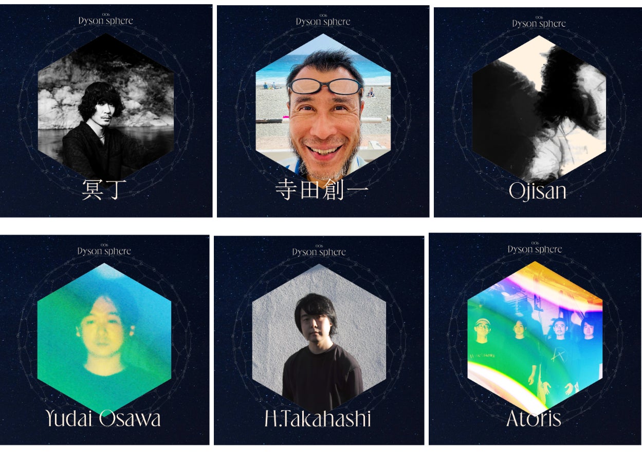 世界で活躍する日本における偉大なハウサー寺田創一、最近国内ツアーを終え現代的なサウンドテクニックで日本古来の印象を融合させた私的でコンセプチャルな音楽を生み出すアーティスト冥丁、数々の国内リスニングフェスティバルに出演し数々の楽曲をリリースしている作曲家兼建築家のH.Takahashi、また『Cycle』がUK【Wisdom Teeth】よりリリースされた、H.Takahashi とYudai Osawa のユニットとAtoris、アムステルダム、バルセロナ、東京の三つのレーベルに所属し「DARK MATE CLUB」を主宰したKAZUKI SERA が別名義Ojisan で出演するなどの著名なアーティストが名を連ねています。