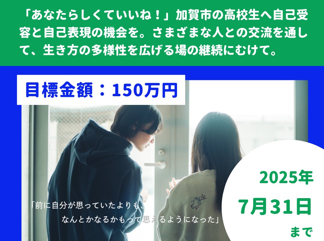 石川県加賀市をフィールドに活動する公益財団法人あくるめは、加賀での挑戦をみんなで応援するクラウドファンディングサービス「KAGA LOCAL FUNDING(カガファンズ)」のプロジェクト第四弾として、合同会社スオの「「あなたらしくていいね!」加賀市の高校生へ自己受容と自己表現の機会を。さまざまな人との交流を通して、生き方の多様性を広げる場の継続にむけて。」を採択いたしました。