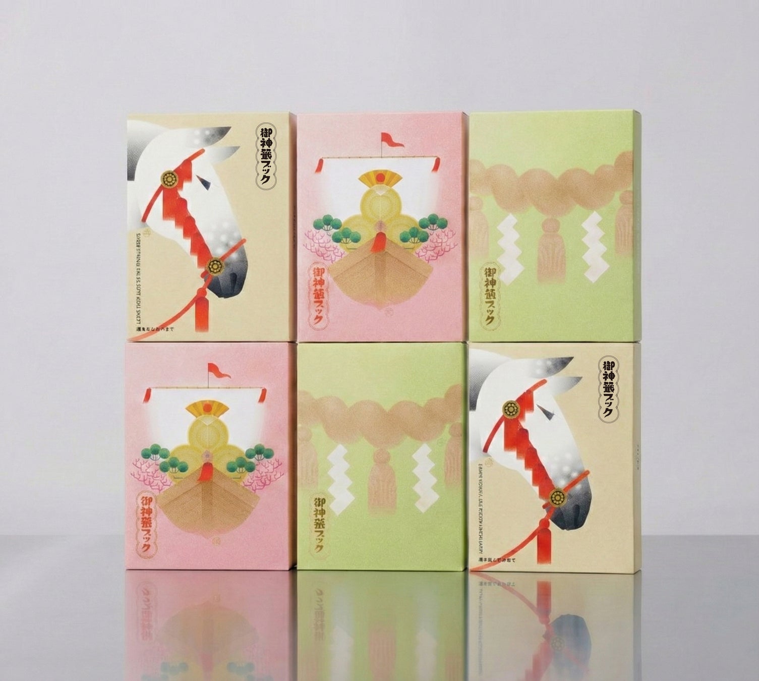 ”年始に御神籤を引くように年に1回でも本を読むきっかけを作りたい”との思いで始めたプロジェクト名にふさわしく、新デザインは干支の馬を神々しく描いた【神馬】・福を運ぶ【宝船】・清らかな【しめ縄】のおめでたいモチーフ。新しい年から読書を始める人へのきっかけ作りや、書店・ブックホテル・カフェに訪れる足がかりとなるように企画しました。