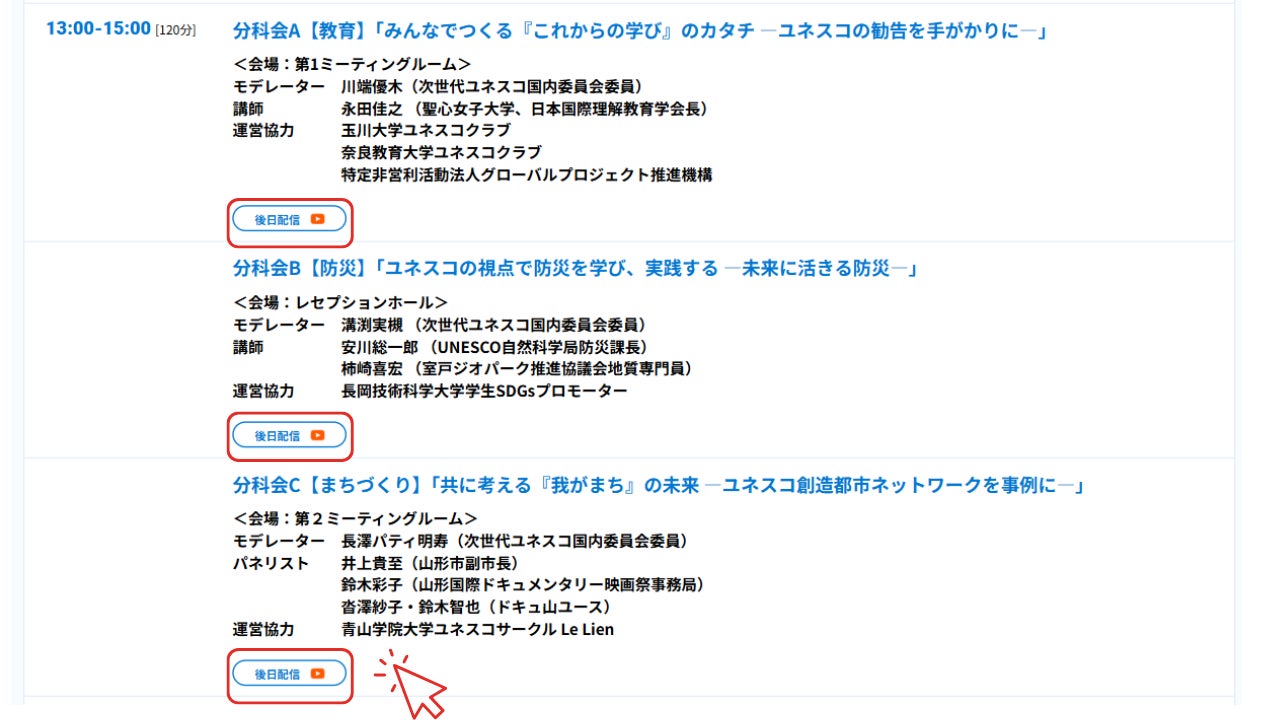 <視聴方法> 第3回ユネスコウィーク特設サイト(https://unesco-sdgs.mext.go.jp/unesco-week-03)内、プログラム部分に「後日配信」のボタンがございます。こちらをクリックするとYouTube画面が開きますので、そちらよりご視聴ください!