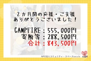 10月1日から11月30日までの約2カ月間で、81名の方より843,500円のご支援をいただきました。