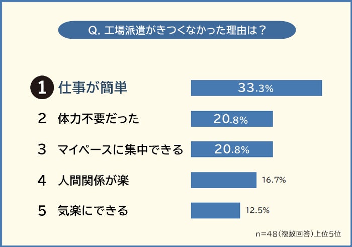 ・工場派遣がきつかった理由1位は「体力的にしんどい」