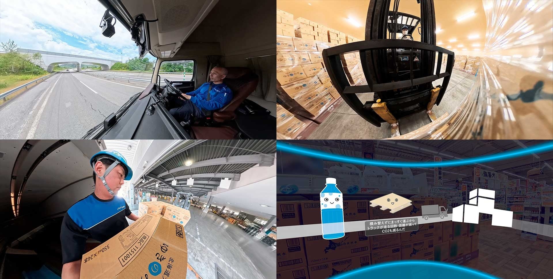 北海道の大自然の中で生まれたミネラルウォーターが、お店に届くまでの輸送の様子を、荷物目線でリアルに体験できるのが、「万博ワンウェイ輸送VR」!